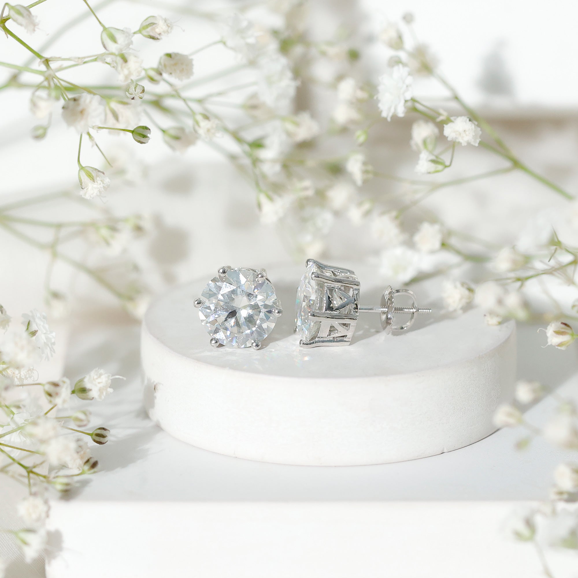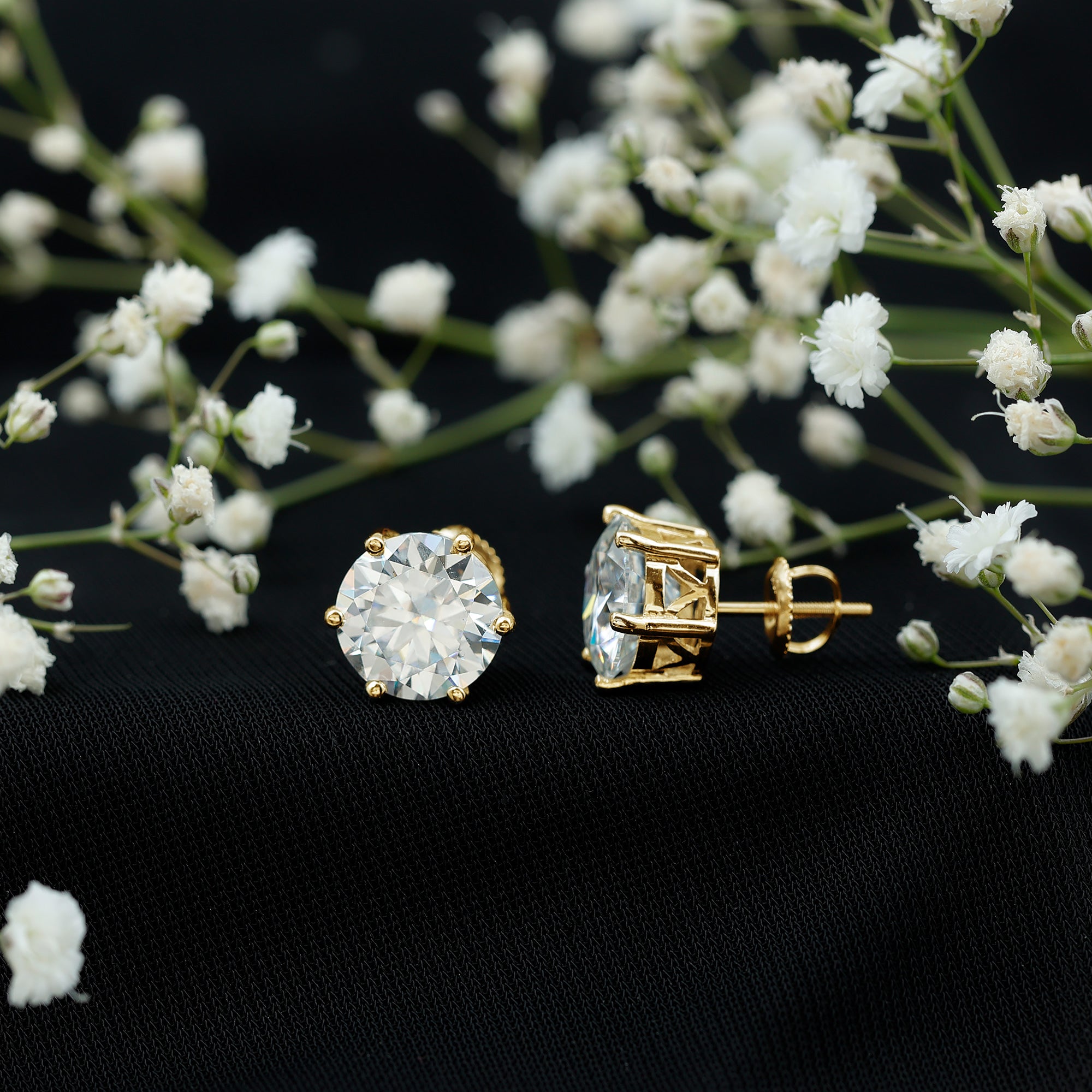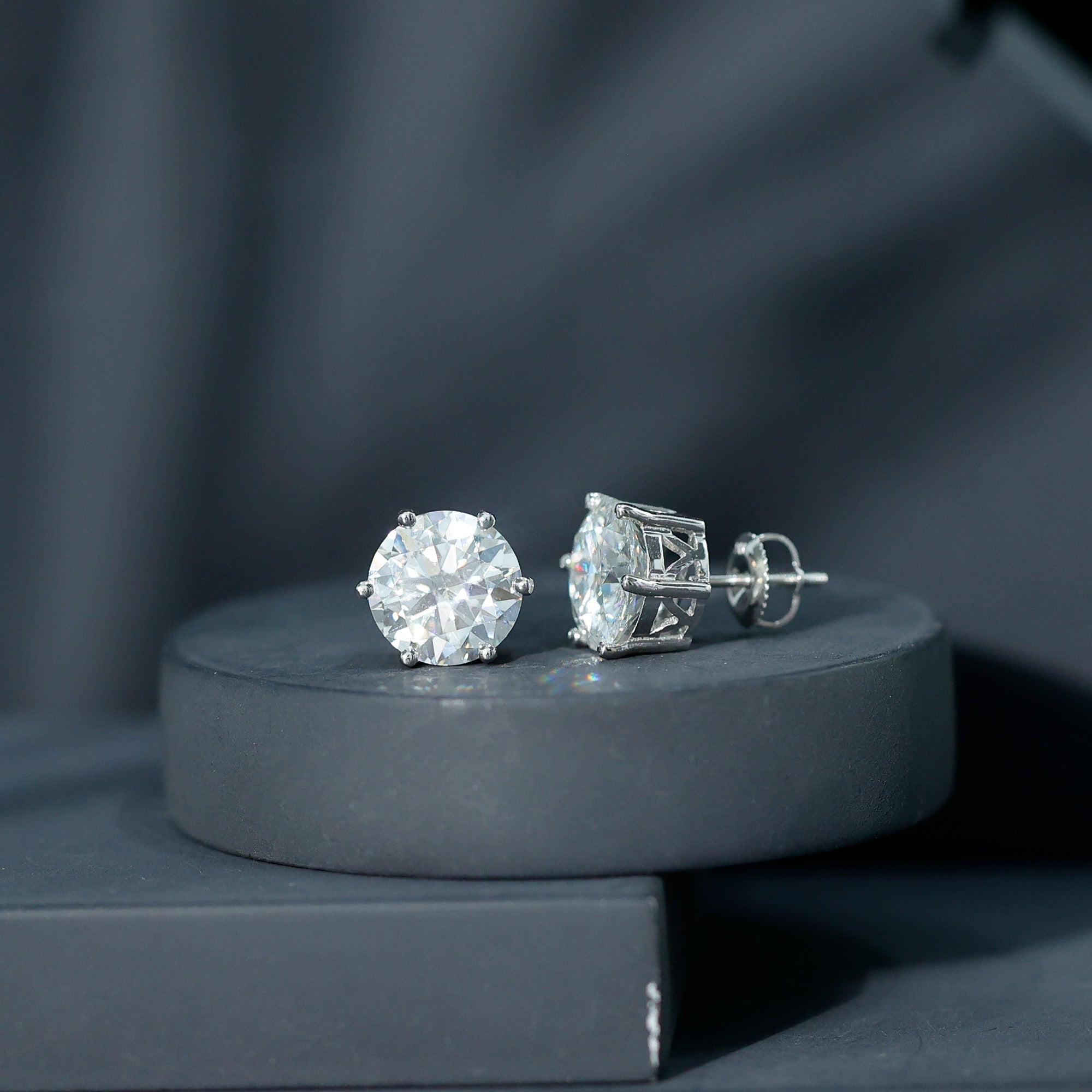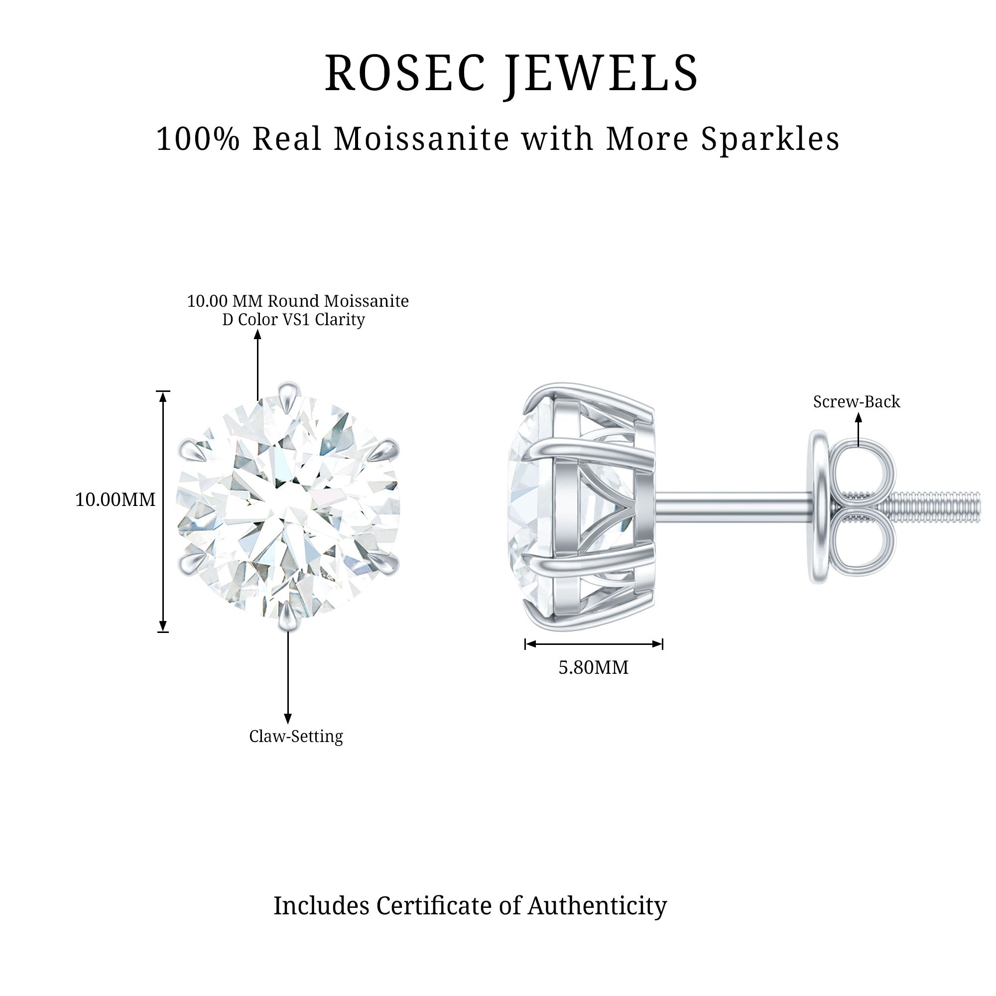 10 MM Round Moissanite Solitaire Stud Earrings in Claw Setting