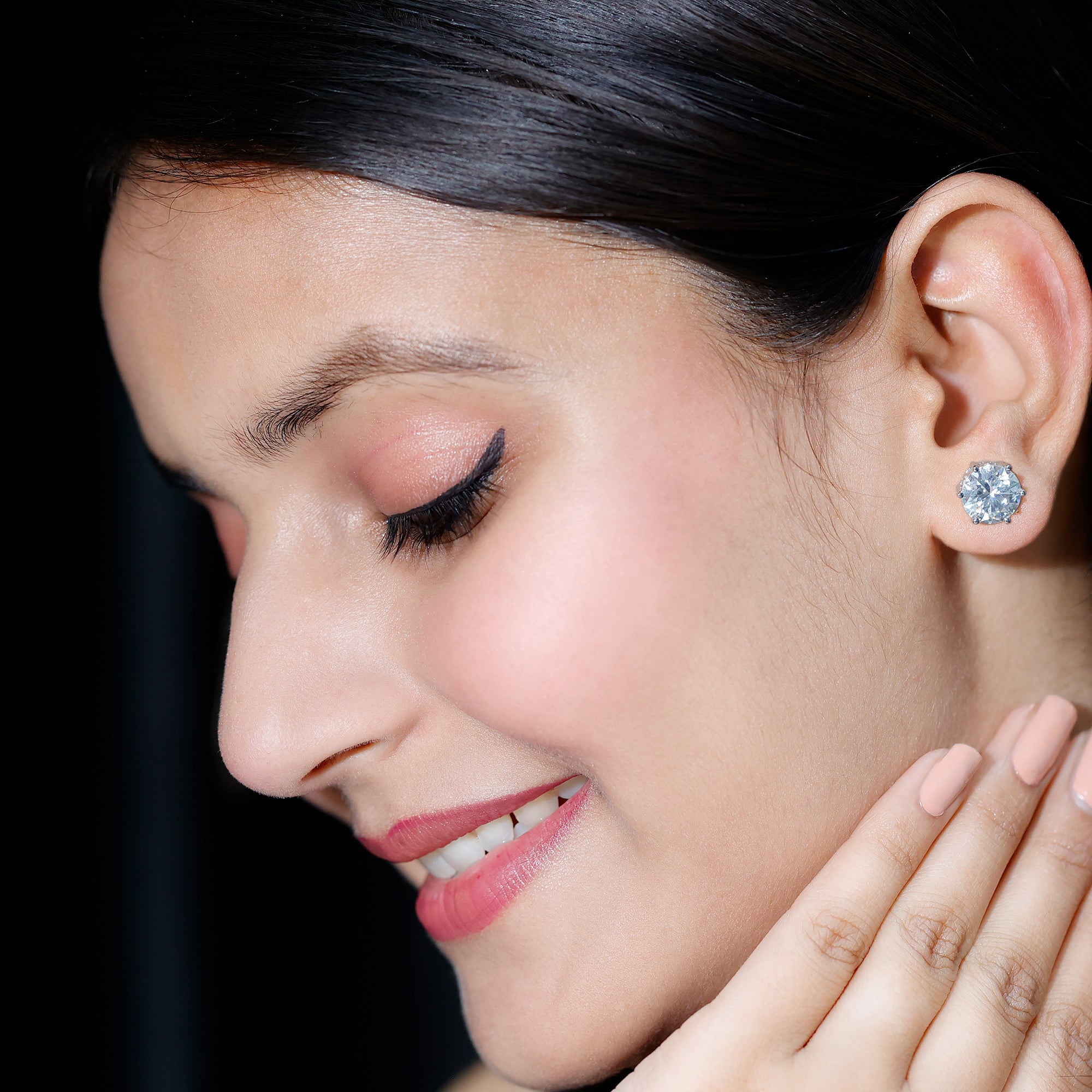 Make a sophisticated statement with these Solitaire Stud Earrings adorned with Round Cut Moissanite Gemstones delicately placed in a claw setting. Their classic design and captivating gemstones make them a perfect accessory to elevate your style. Whether for a formal event or everyday wear, these earrings offer a touch of sophistication and charm.