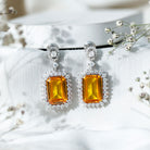 10X14 MM Lab Grown Yellow Sapphire Emerald Cut Earrings in Silver
