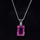 This stunning Emerald Cut Pendant Necklace, made from 14K white gold plated silver, is exactly what you need to elevate your neckline for that special occasion. It features a breathtaking 10X14 MM emerald cut lab created pink sapphire stone along with delicate Moissanite securely set in prongs, enhancing its beauty. Drawing inspiration from old world elegance, this pendant is truly a showstopper. The rabbit ear bail connects the Sapphire Solitaire Necklace to a fine cable chain. This Wedding Necklace for Bride is the perfect finishing touch for your big day. Every detail of the necklace reflects exceptional craftsmanship, making it a fantastic gift for milestones, celebrations, or simply a treat for yourself. Embrace the elegance and charm of a solitaire with this piece, an ideal choice for brides-to-be who value jewelry that beautifully blends classic and contemporary styles.