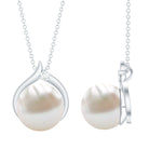 11 CT Bead Set Freshwater Pearl Solitaire Pendant with Diamond