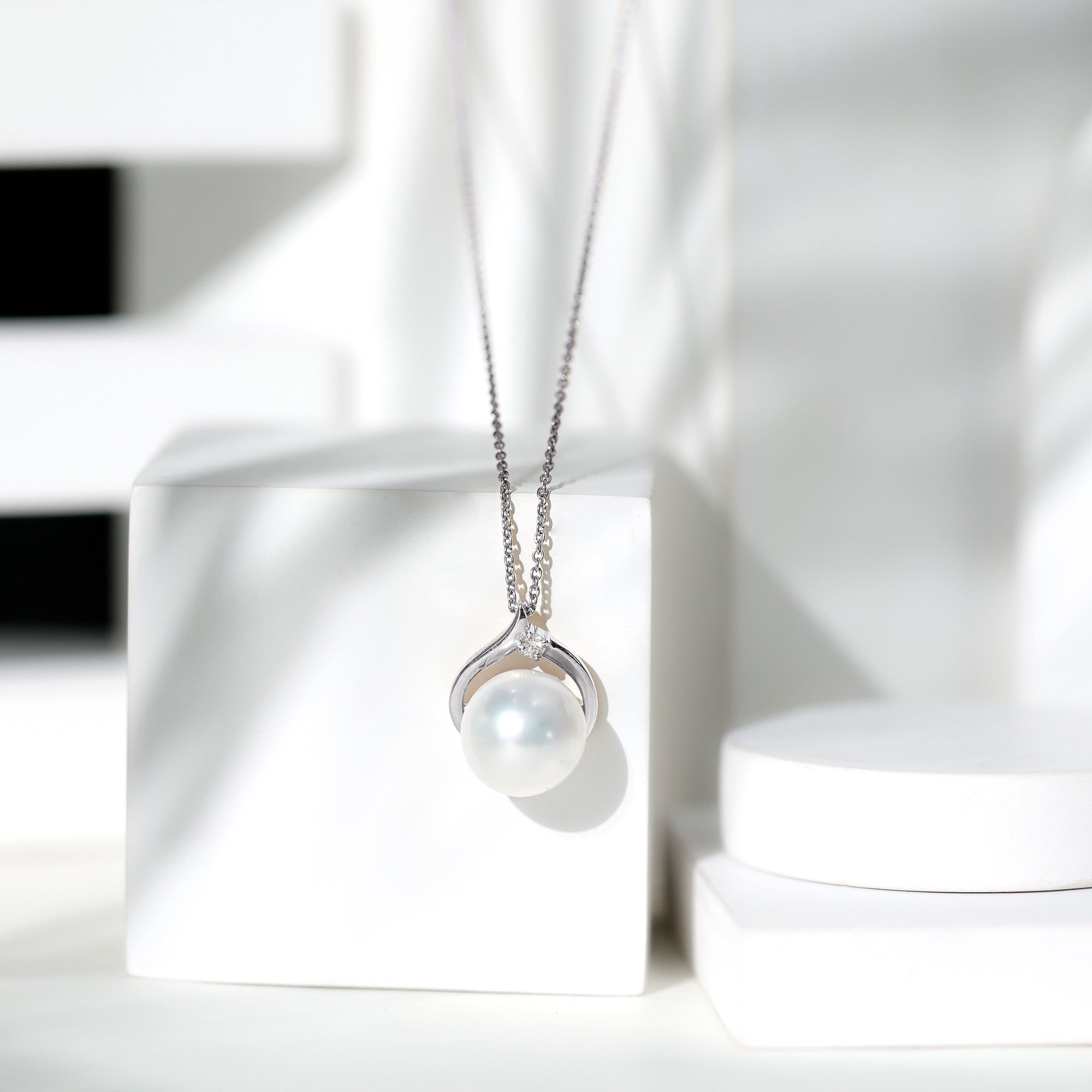 11 CT Bead Set Freshwater Pearl Solitaire Pendant with Diamond