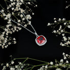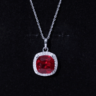 12MM Cushion Lab Grown Ruby and Moissanite Halo Pendant Necklace