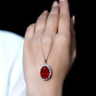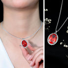13X18mm Lab Grown Orange Sapphire Moissanite Halo Necklace With Silver Chain