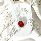 Complete your look with this Lab Grown Sapphire Pendant, precisely handcrafted with 14K White Gold Plated Silver. The pendant features a 13X18 MM Oval Shape lab created orange sapphire surrounded with round shape Moissanite halo to make it a true statement piece of jewelry. The Vintage Wedding Necklace has luxurious hue of Orange Sapphire which automatically attracts everyone towards the wearer, and White Moissanite accentuates the bright orange color. This Halo Pendant Necklace beholds the classic shine of AAAA Quality Sapphire, which makes it perfect to be worn on the special day. A cable Chain is there holding the Pendant, so you can wear it comfortably and can layer with other stacking necklaces. This Oval Shaped Necklace will be shipped to you in Premium packaging with a certificate of authenticity.