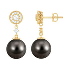 15.5 CT Tahitian Pearl Dangle Earrings with Diamond Stones