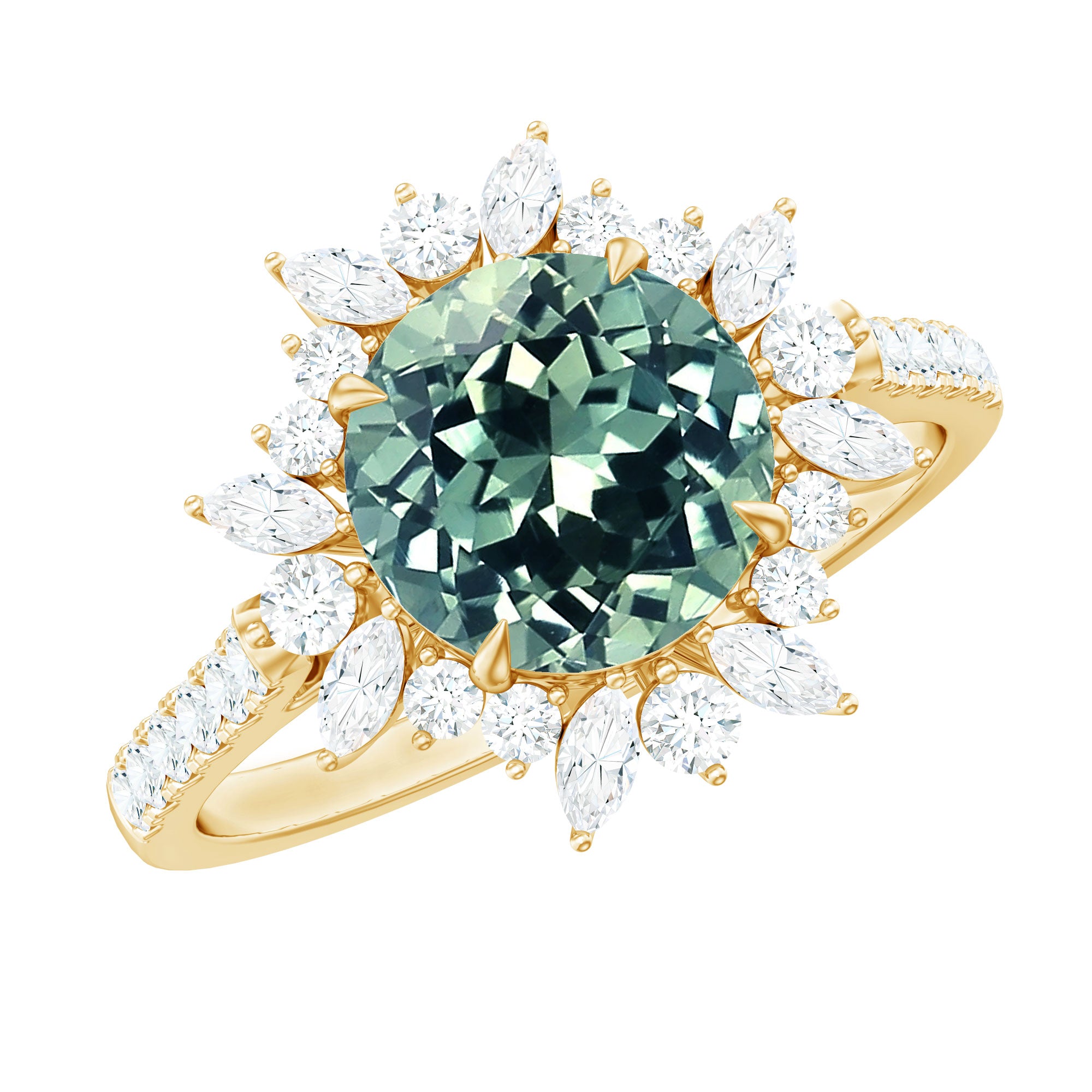 2.25 Carat Lab Grown Green Sapphire Statement Engagement Ring with Moissanite