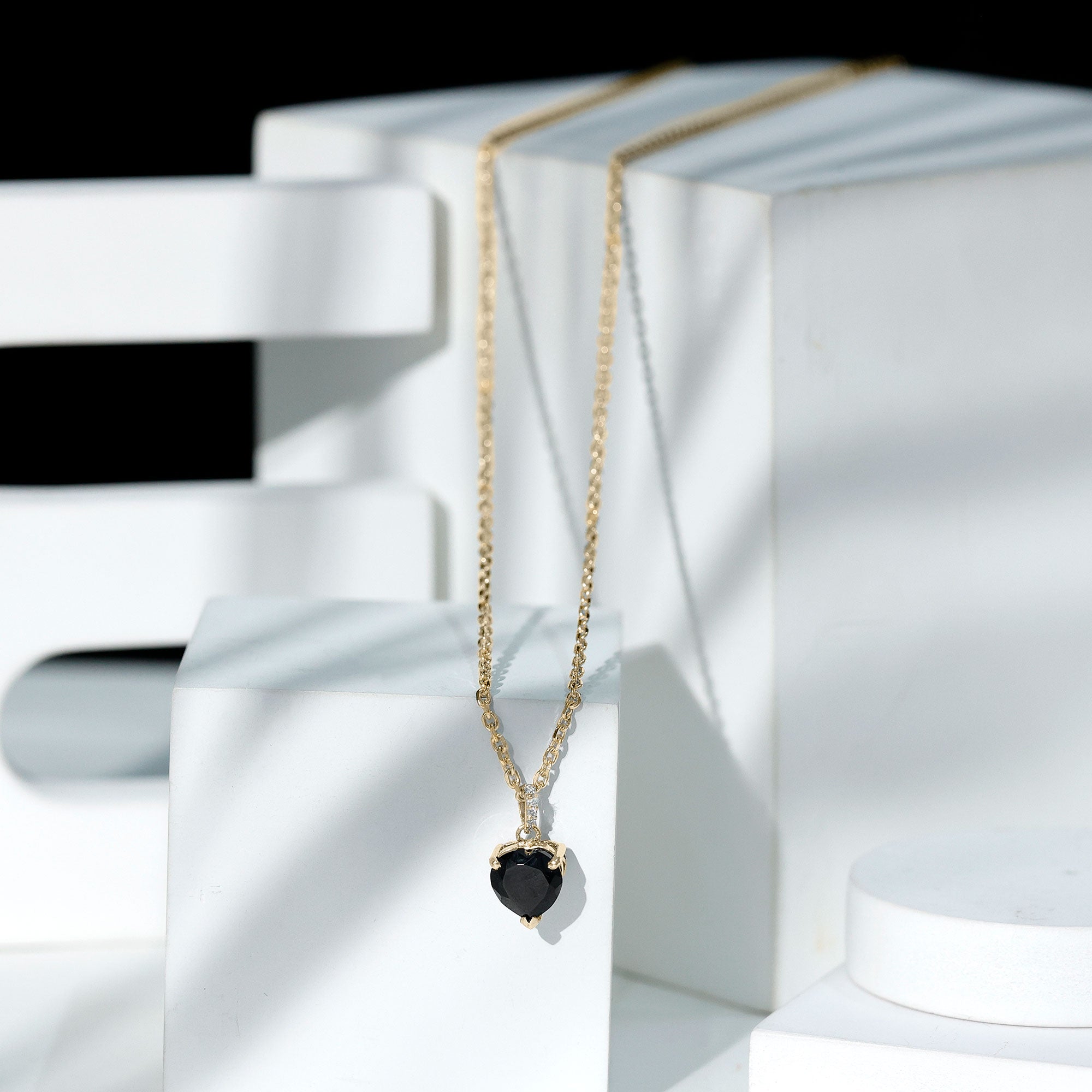 2.25 CT Black Onyx Solitaire Heart Pendant with Diamond