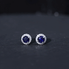 2.25 CT Blue Sapphire and Diamond Halo Stud Earrings