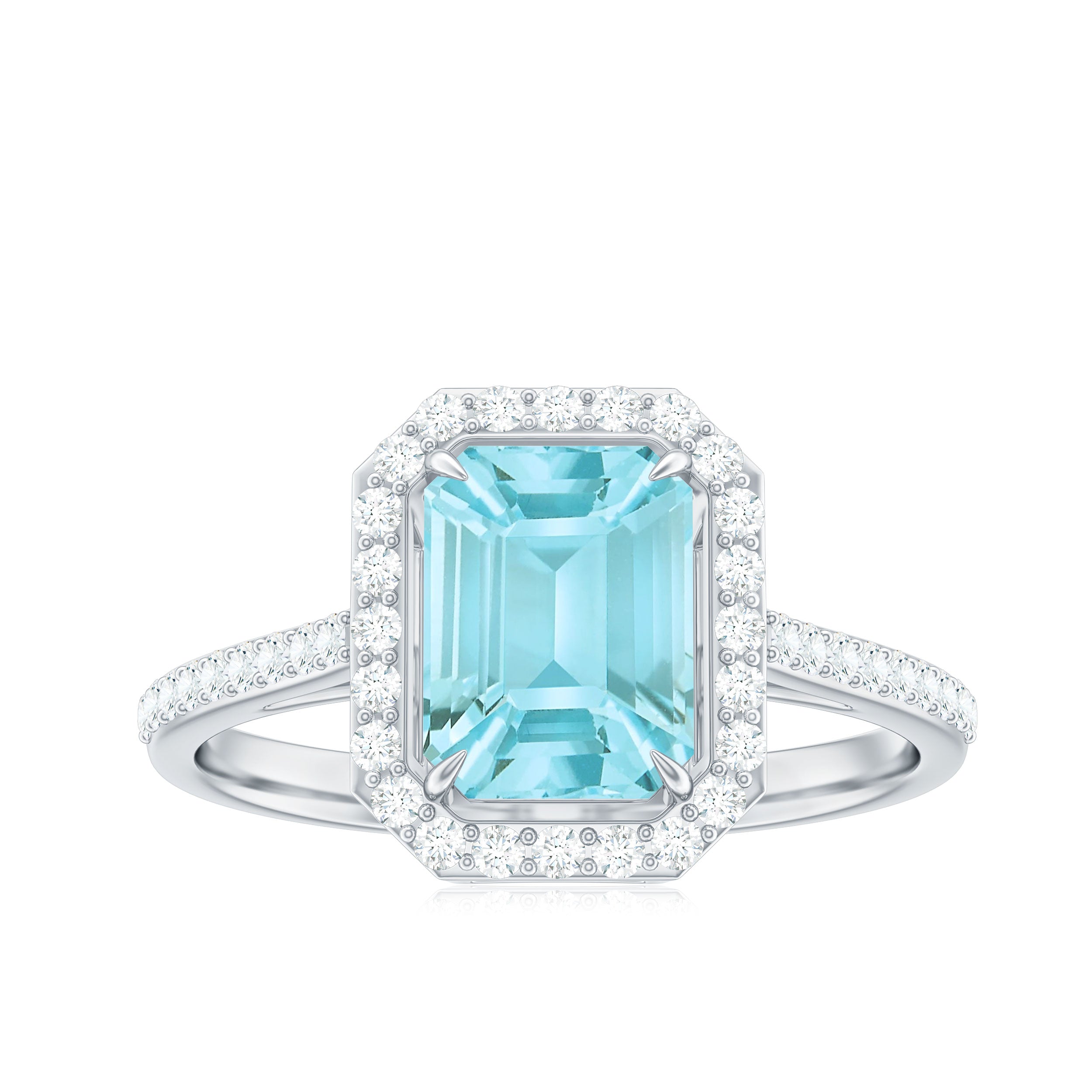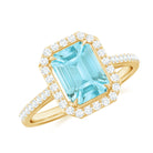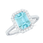 2.25 CT Emerald Cut Shape Sky Blue Topaz Classic Engagement Ring with Diamond Halo