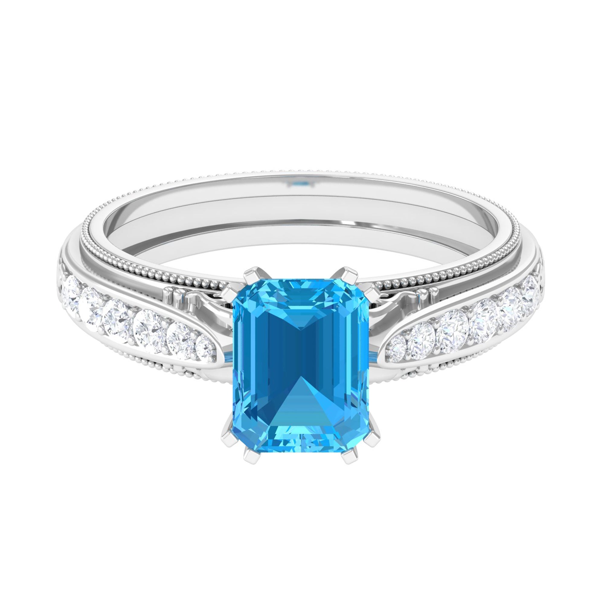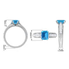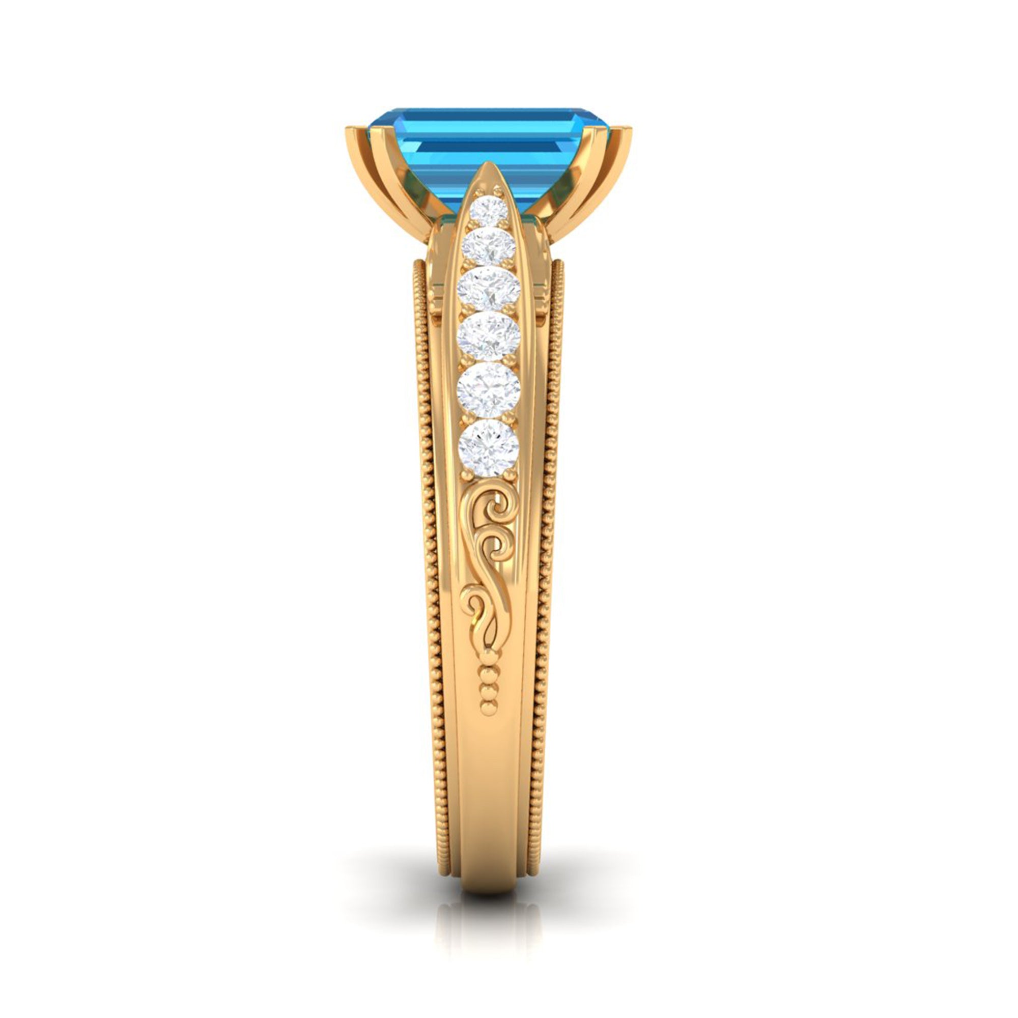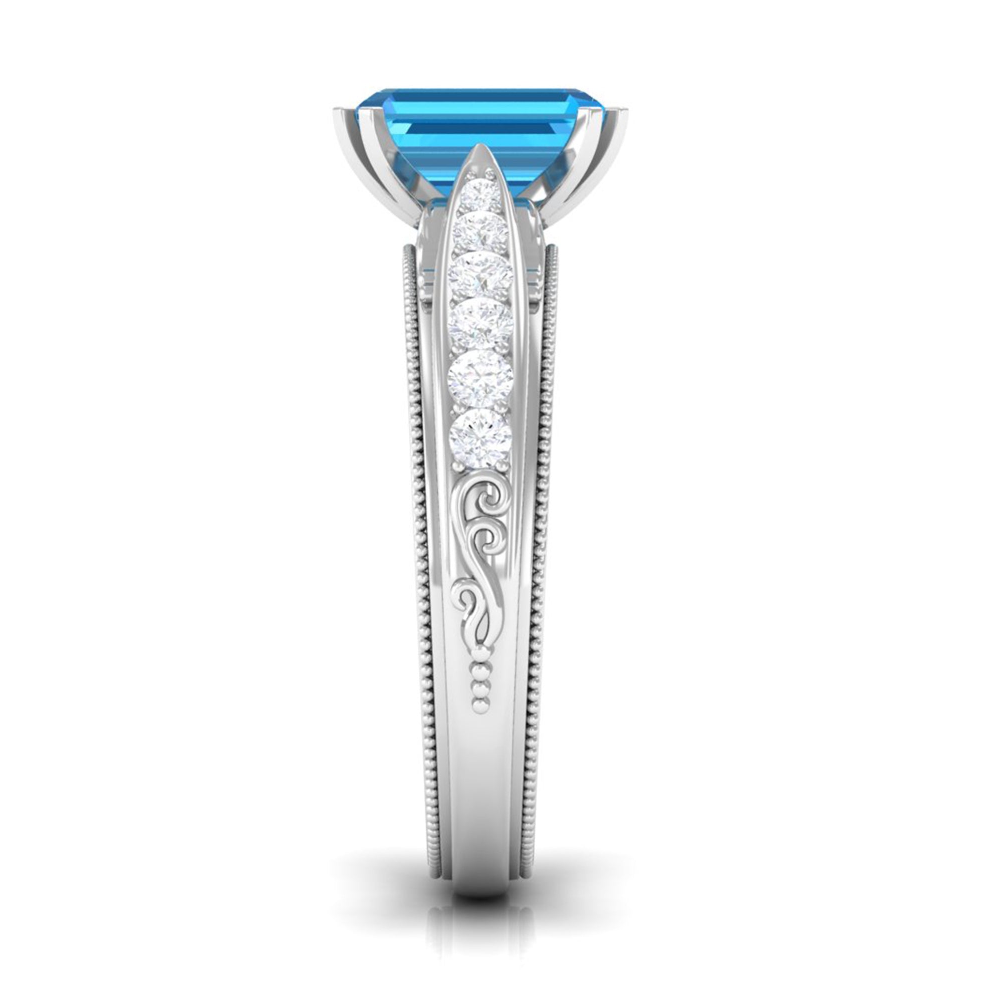 2.25 CT Emerald Cut Swiss Blue Topaz Solitaire Ring with Diamond Side Stones