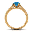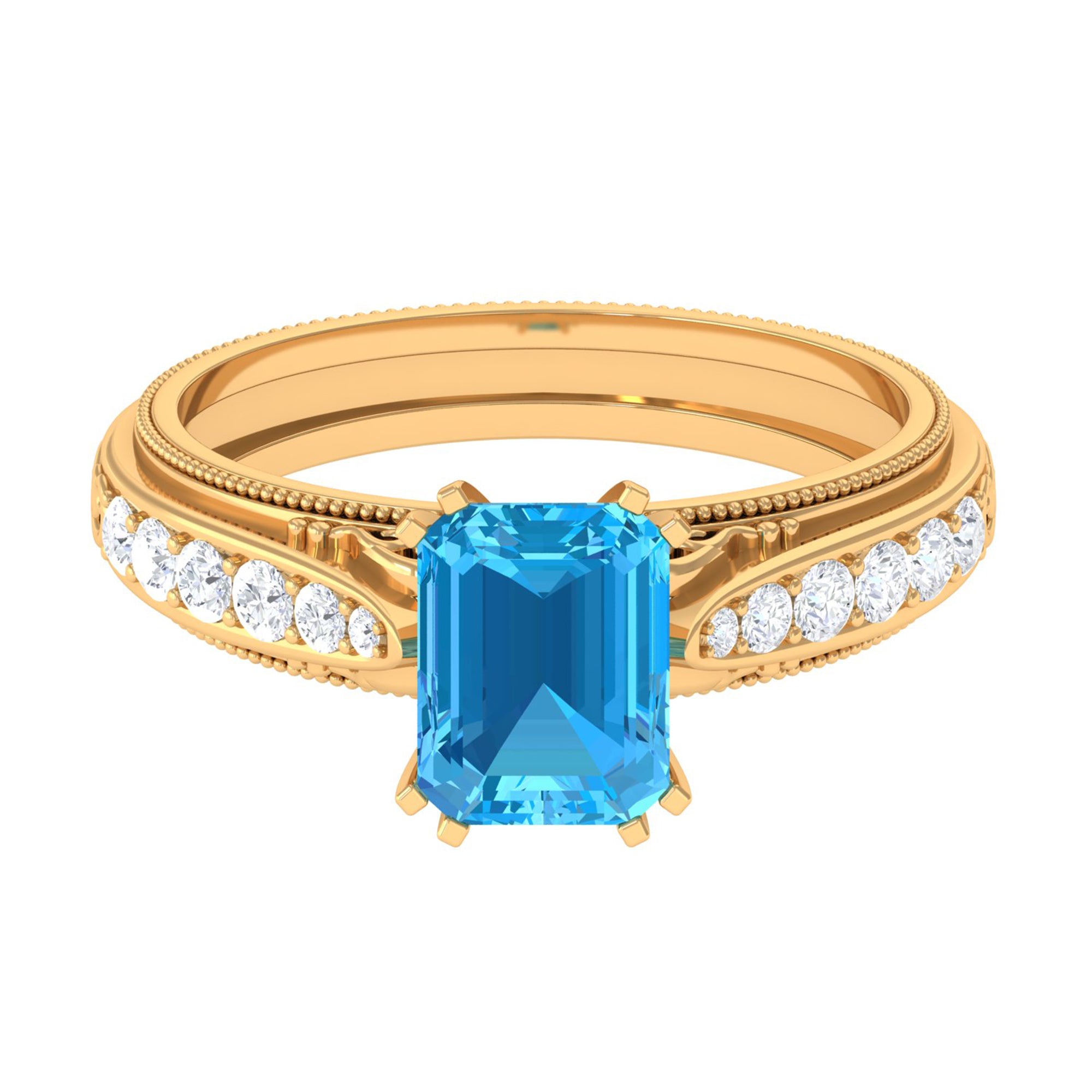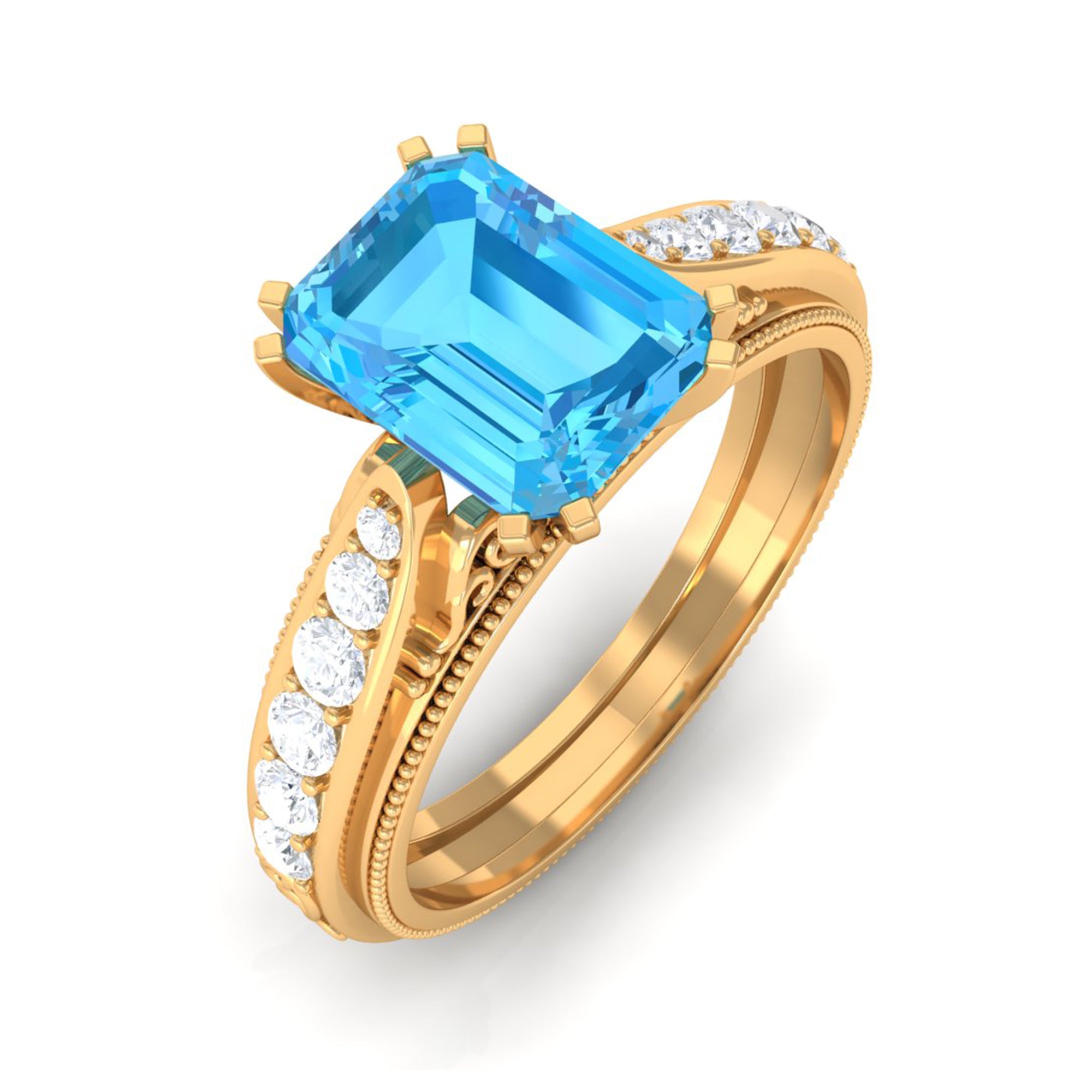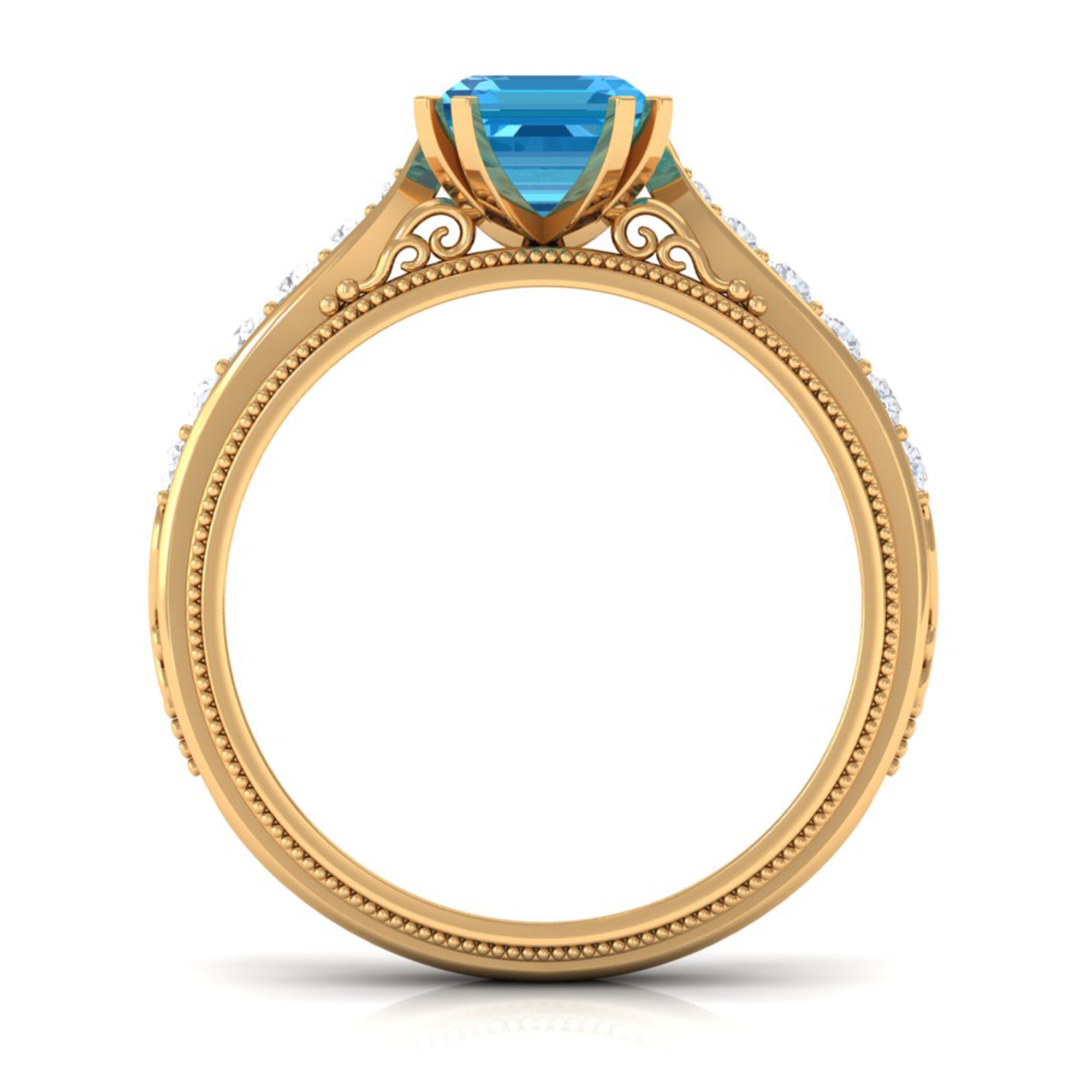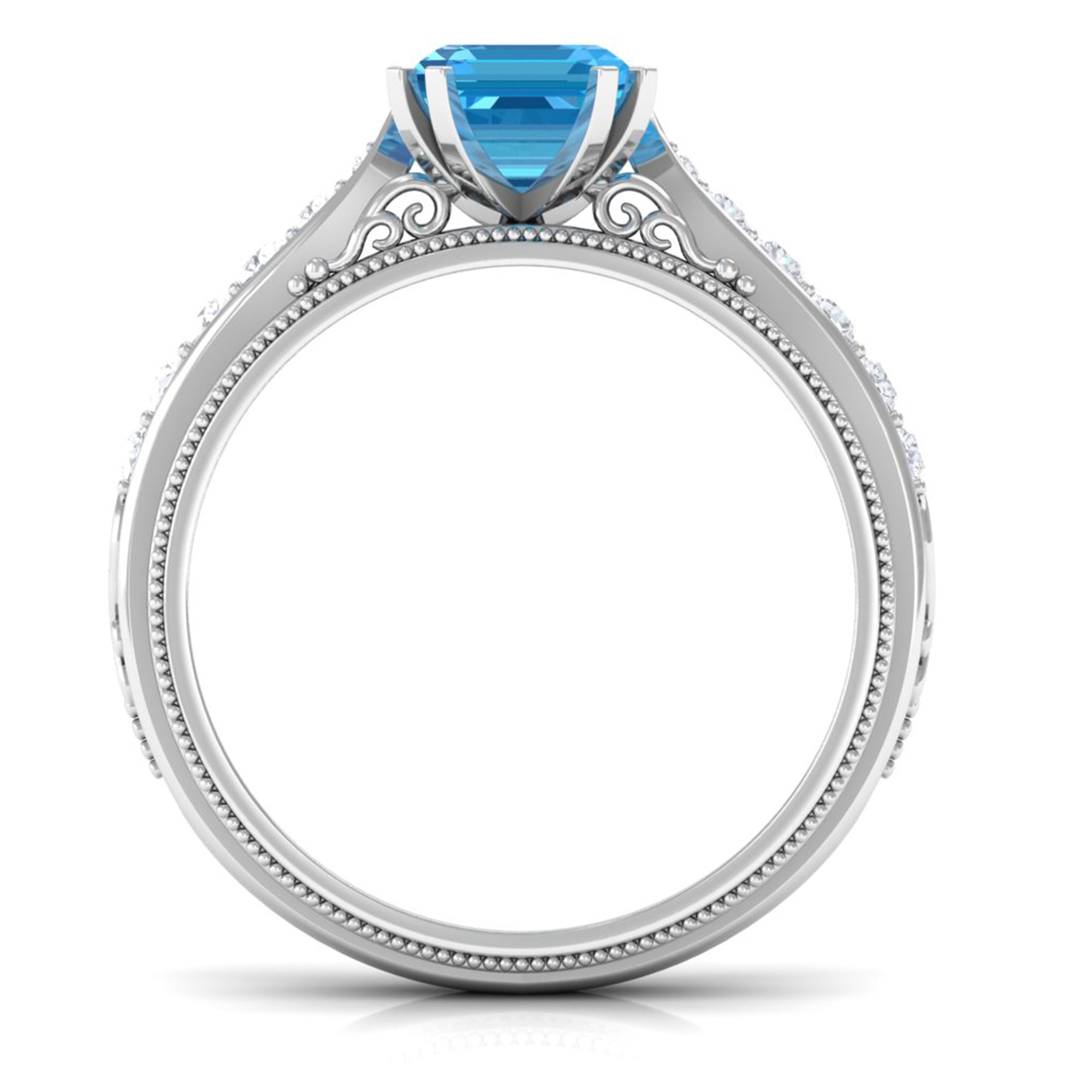 2.25 CT Emerald Cut Swiss Blue Topaz Solitaire Ring with Diamond Side Stones