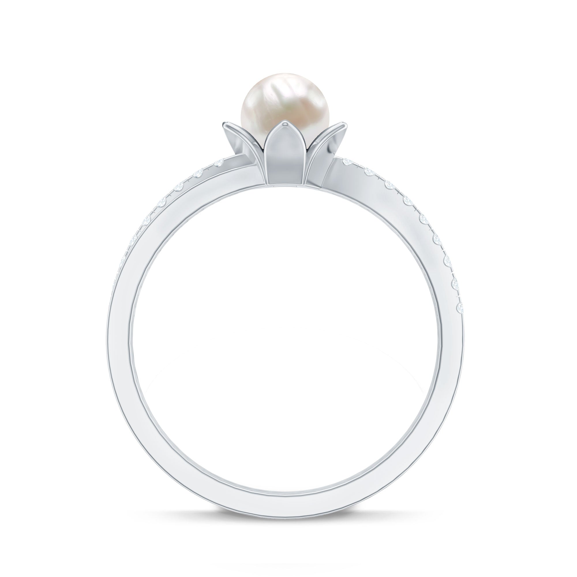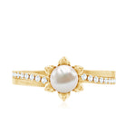Assemble the vivid glimpse of your meeting and propose your lady with this Freshwater Pearl Engagement Ring. This Floral Engagement Ring is embellished with Diamond Side Stones to create a sumptuous appeal to the ring. This Pearl Ring is a delicate choice for your partner to be, get this Pearl and Diamond Ring for your lady from our stone.