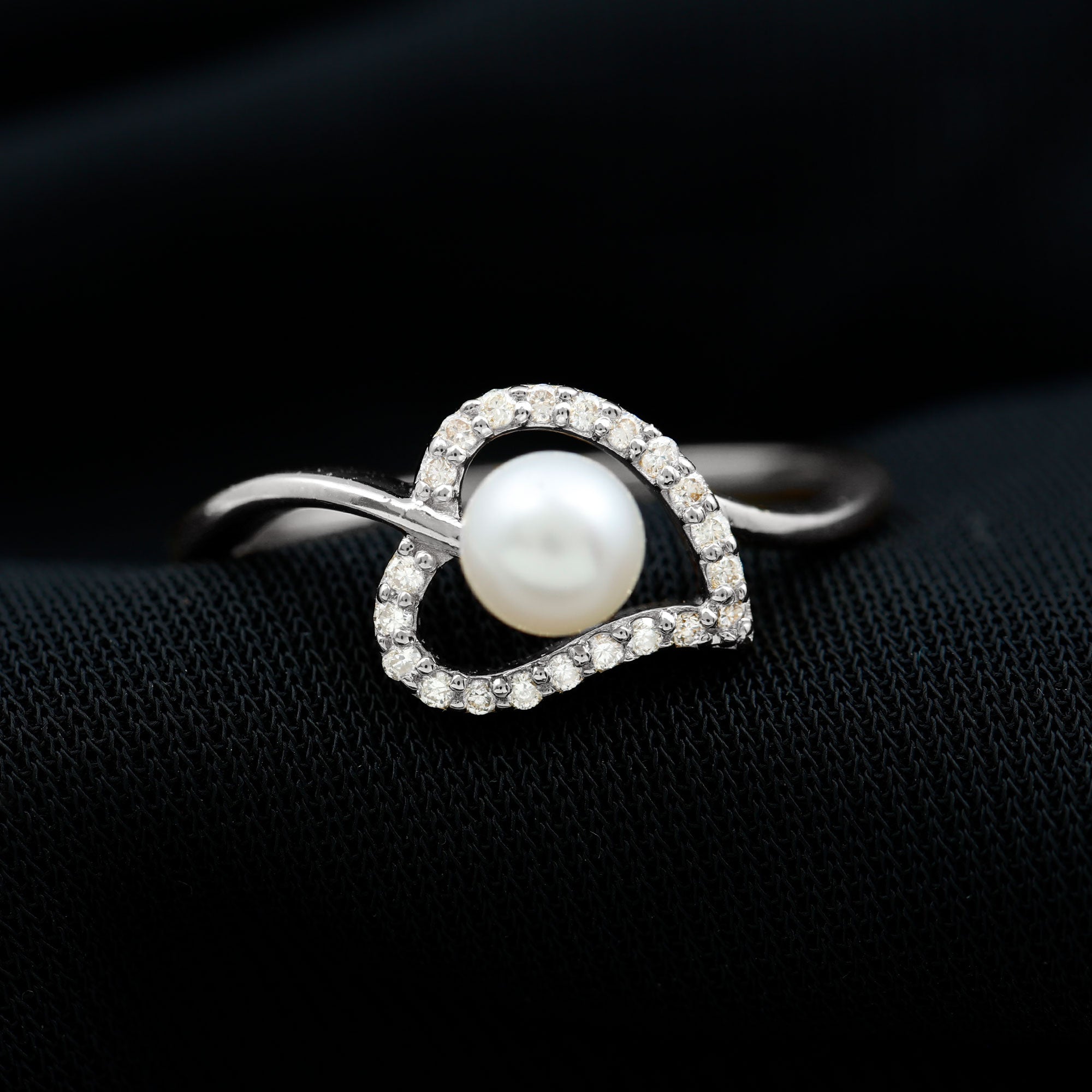 Express your love in the most exquisite way with our Pearl Heart Engagement Ring, featuring a dazzling pearl center stone and a bypass shank. The heart ring is accented with a shimmering Diamond, adding a touch of radiance and glamour to this already stunning piece. Perfect for showing your love and appreciation to that special person in your life, this ring is sure to become a treasured symbol of your eternal and never-ending love. So why wait? Grab this Freshwater Pear Ring with Diamond today and make her feel truly cherished and adored.