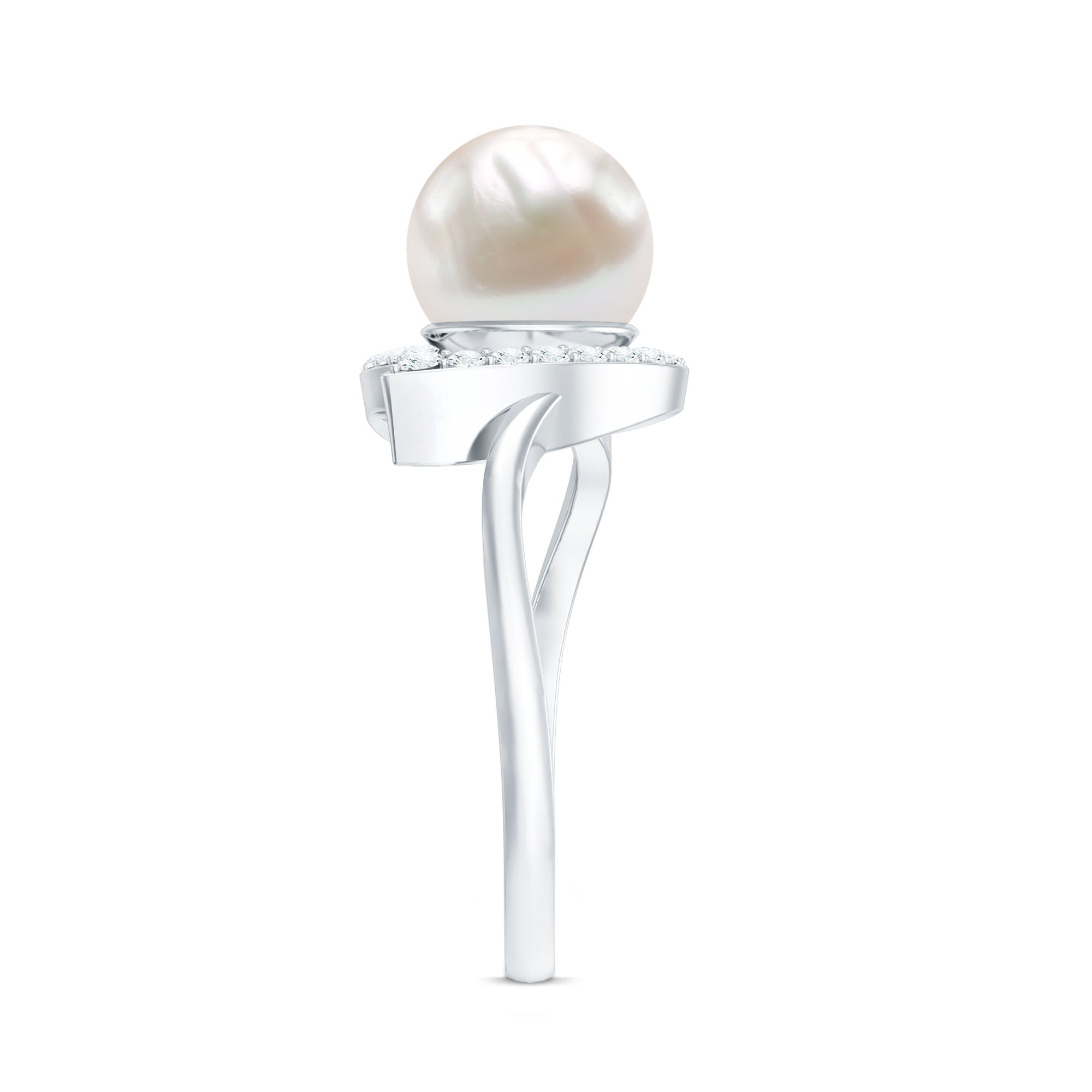 2.25 CT Freshwater Pearl and Diamond Heart Bypass Engagement Ring