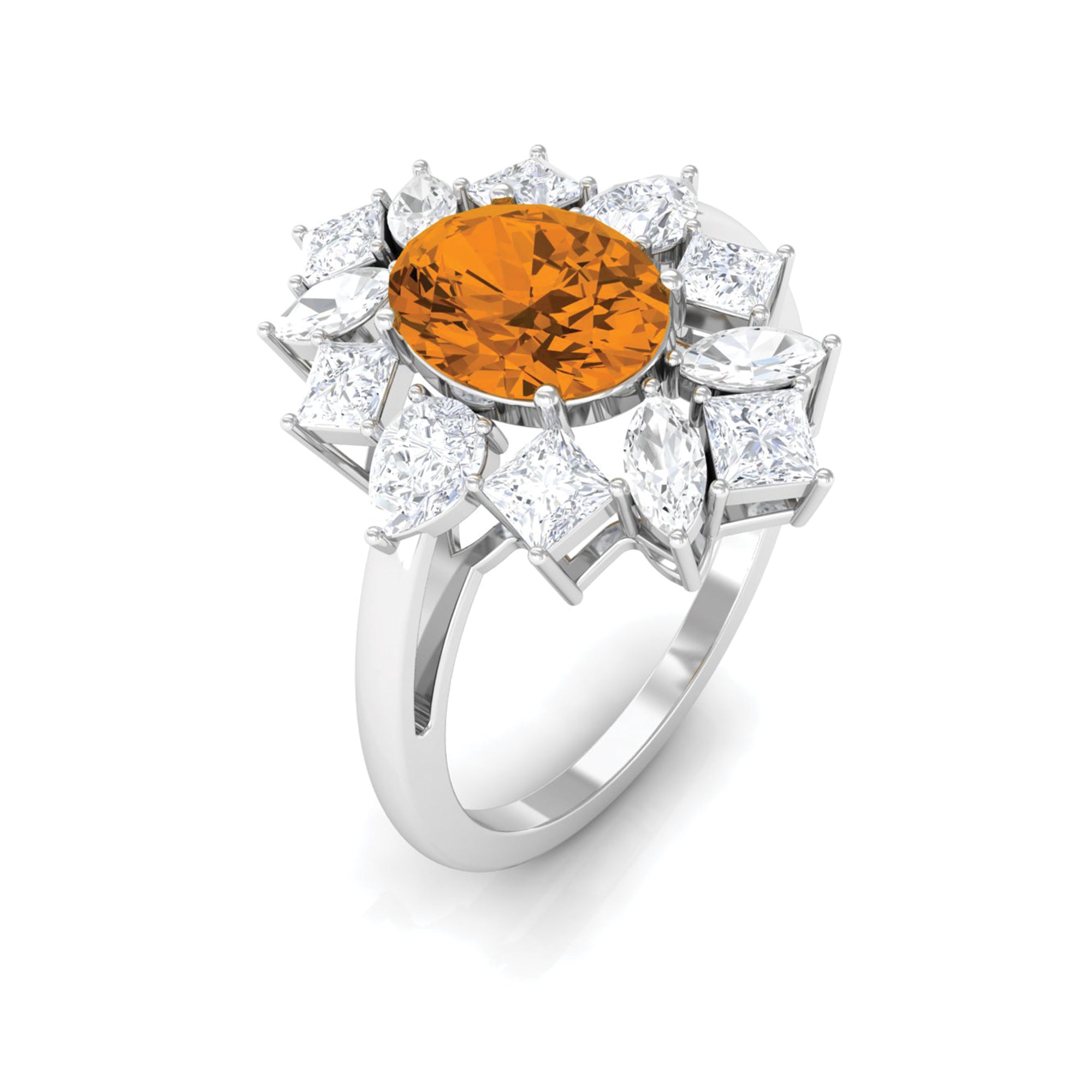 2.25 CT Oval Cut Citrine Cocktail Ring with Moissanite Stones