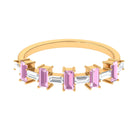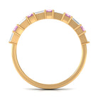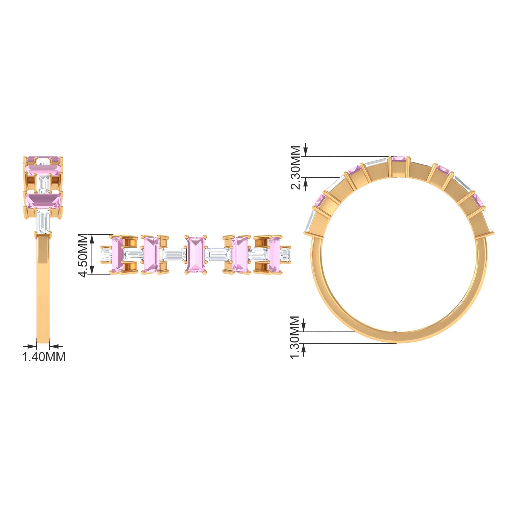 Embrace modern elegance with this Half Eternity Ring. The alluring Pink Tourmaline gemstone, exude a contemporary charm, complemented by the brilliant sparkle of Moissanite gemstones set horizontally. Celebrate your cherished bond with this captivating Pink Tourmaline and Moissanite ring, a perfect blend of style and sentiment.