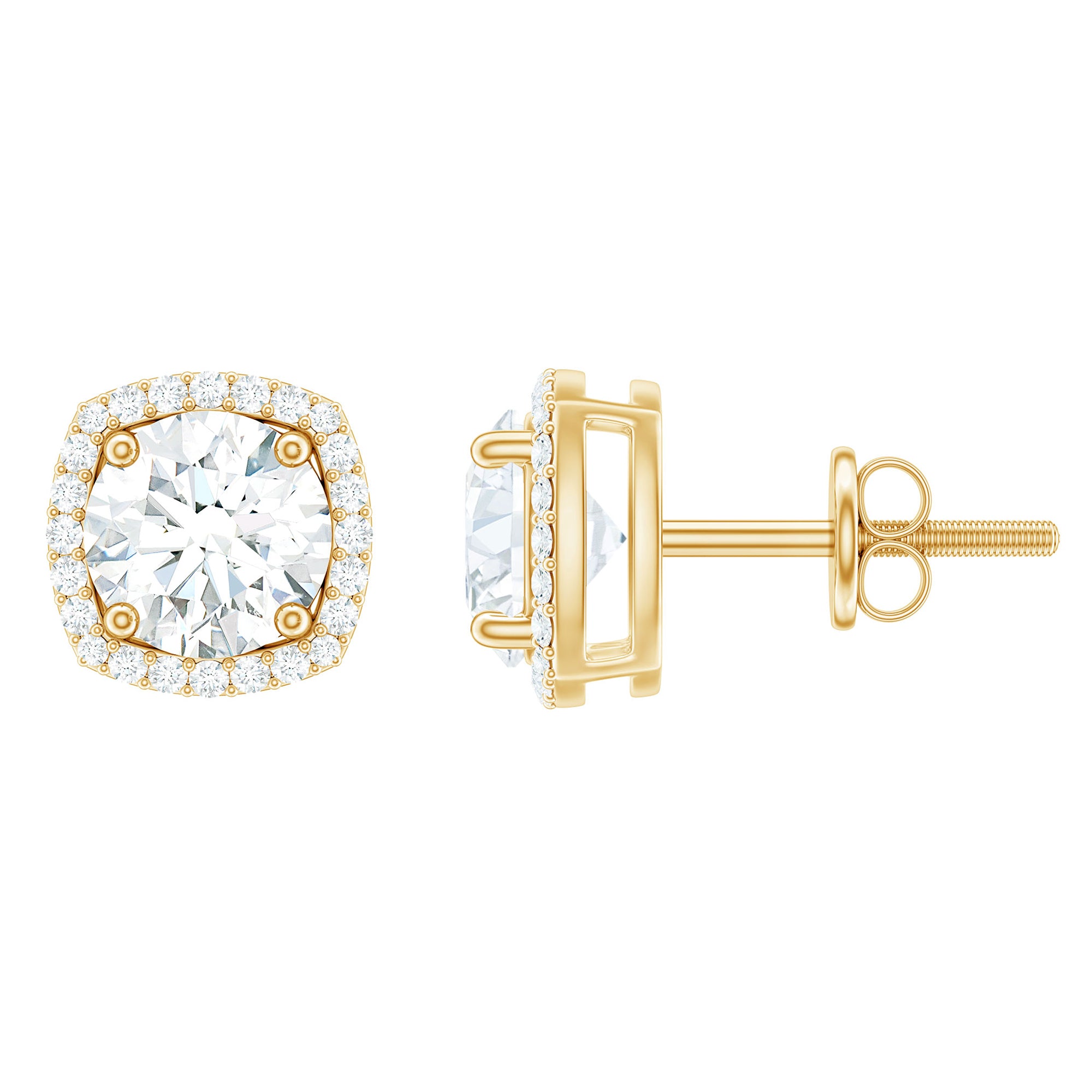 Elevate your party look with these Cocktail Zircon Stud Earrings. The earrings feature a round-cut Zircon at the center surrounded by a halo of Zircon. These earrings are crafted with solid gold and have screw backs, adding a touch of elegance to your style.