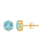 This Unique Stud Earrings embellished with Round Shape Sky Blue Topaz Gemstone is set as Solitaire in a Claw Setting, crafted in a Solid Gold.