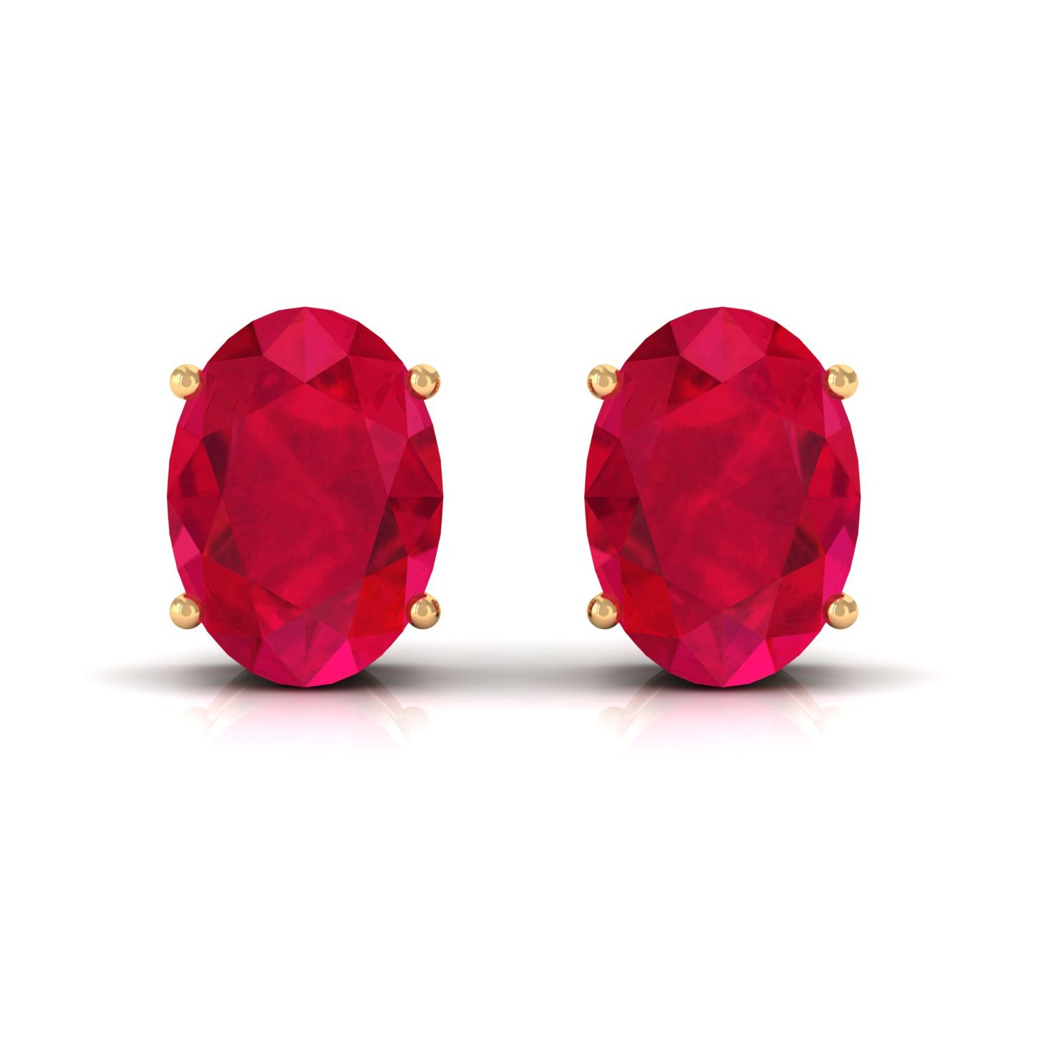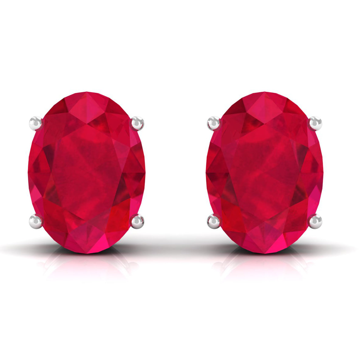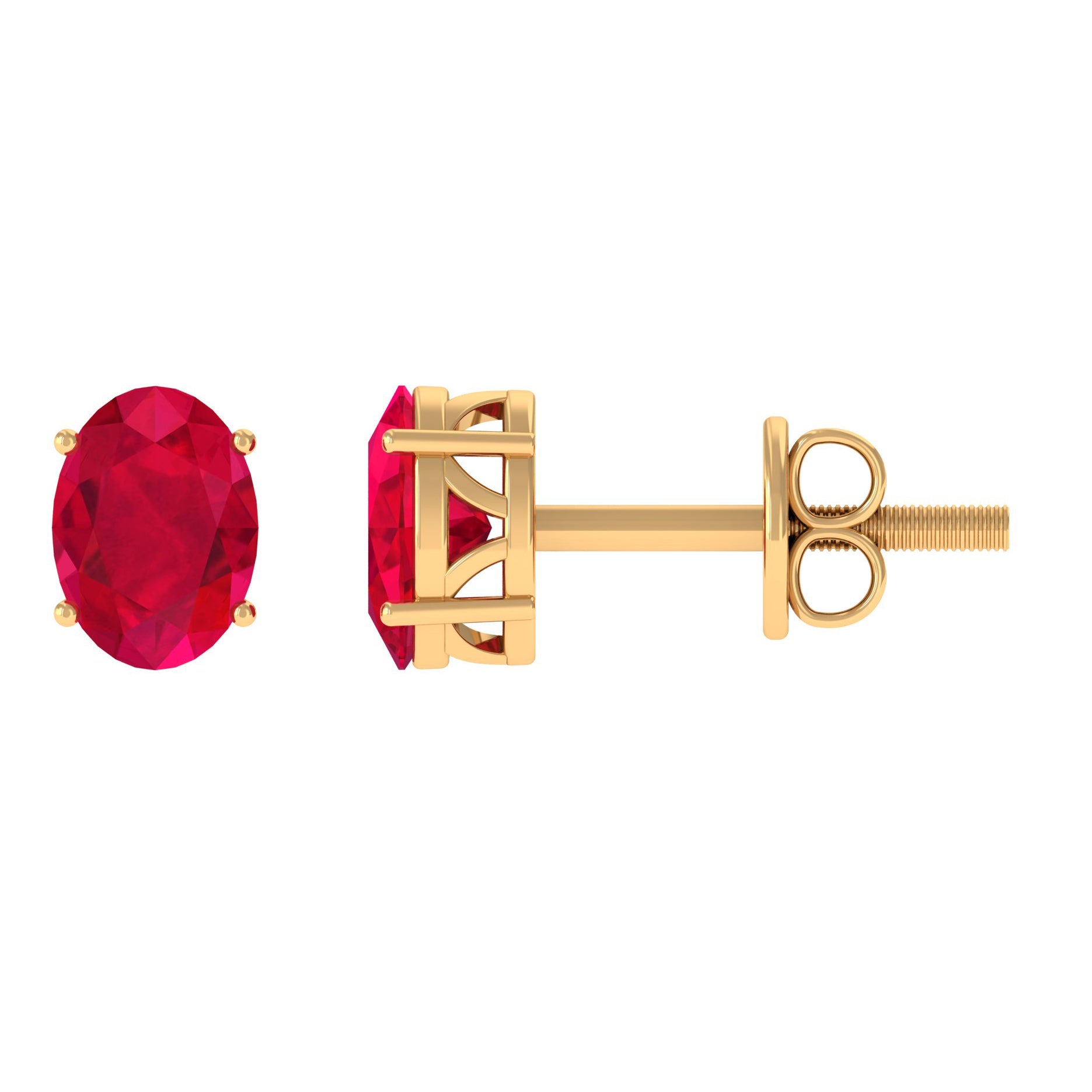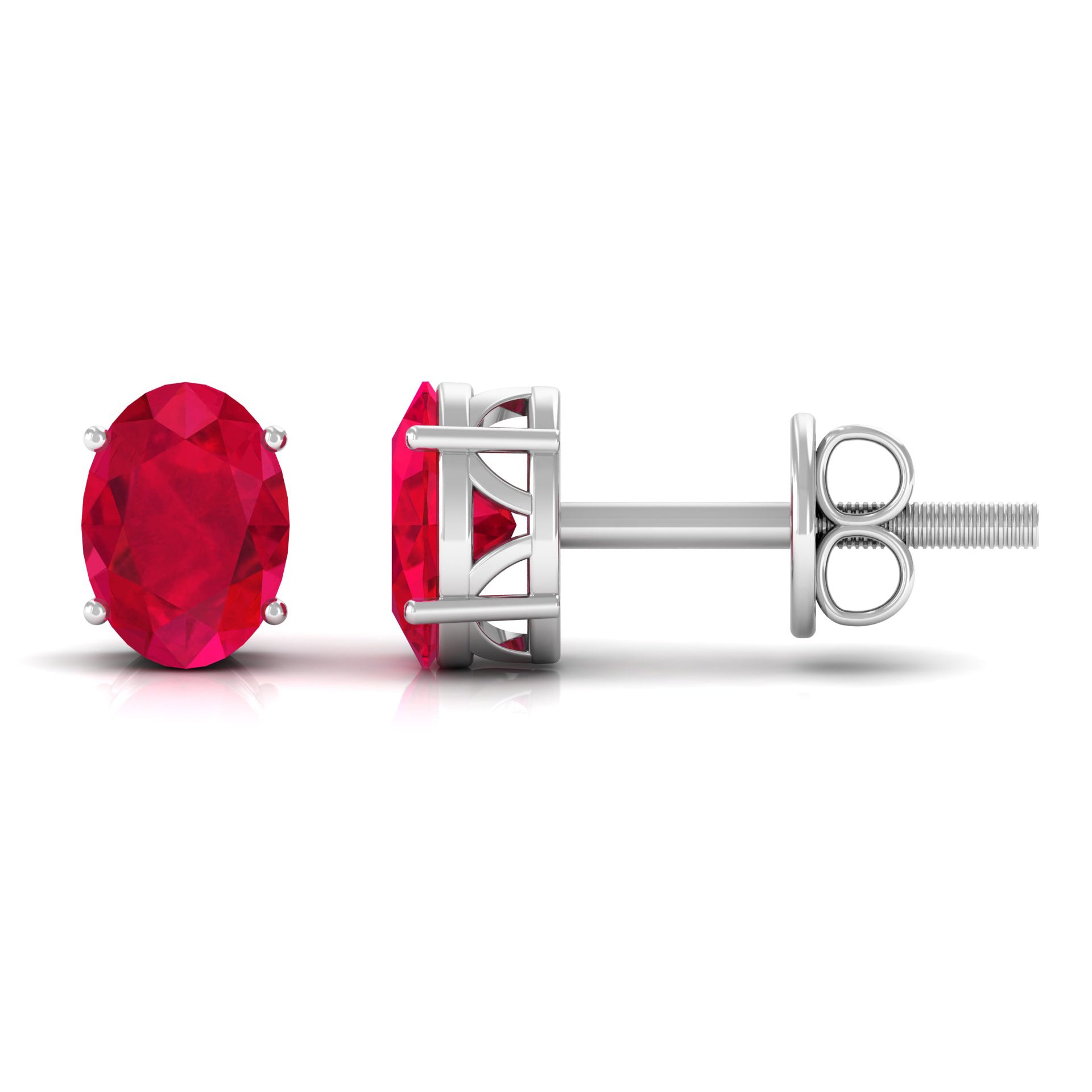 2.25 CT Solitaire Stud Earrings with Oval Shaped Created Ruby