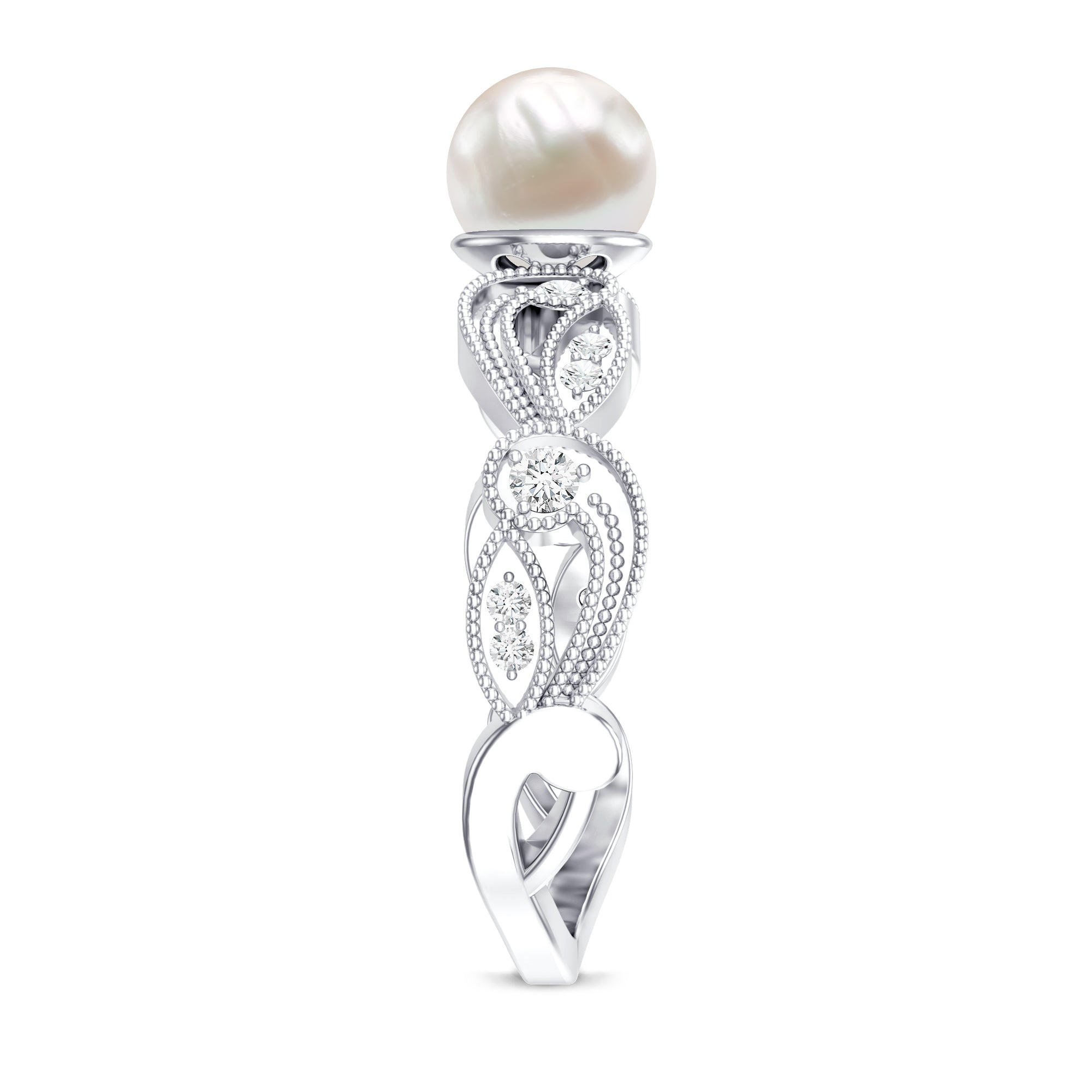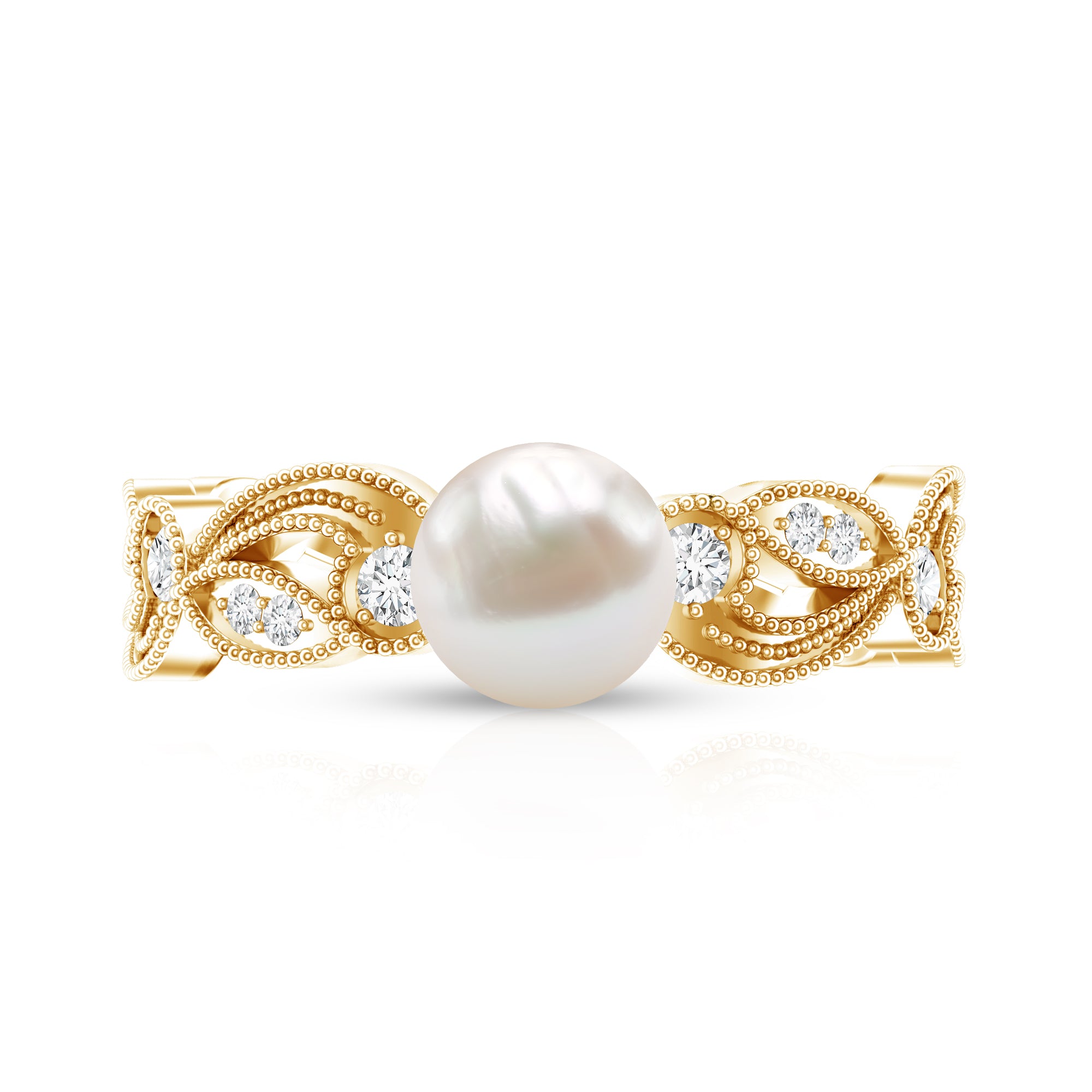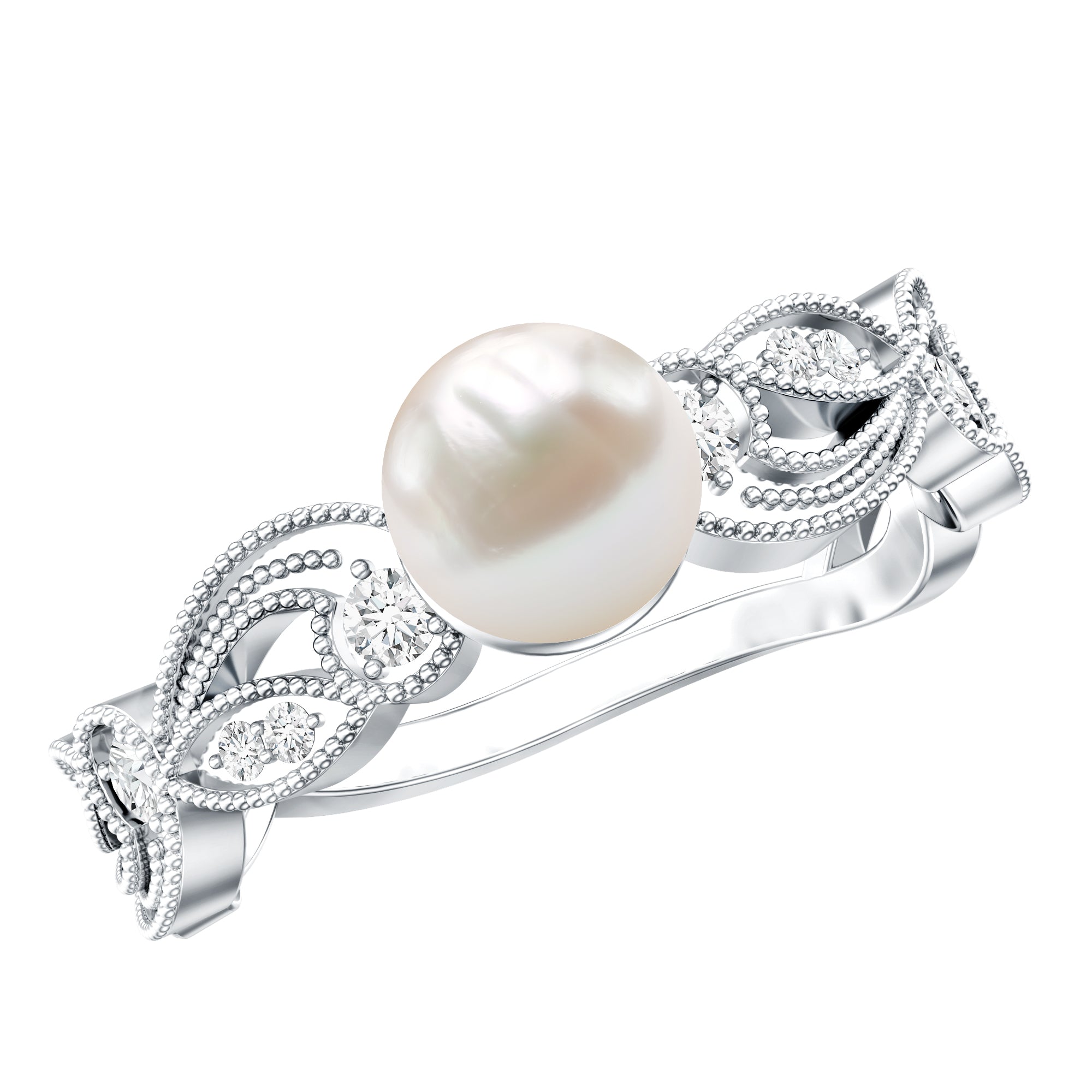 2.5 CT Freshwater Pearl Solitaire Beaded Ring with Diamond