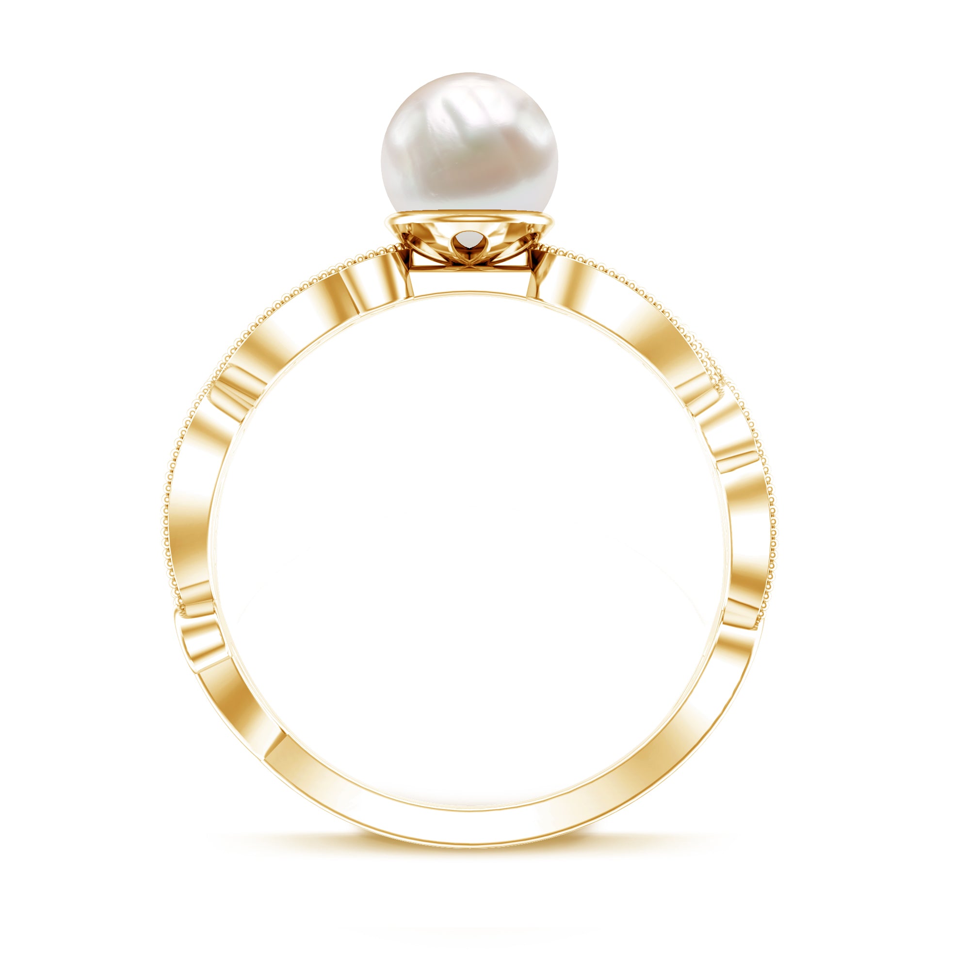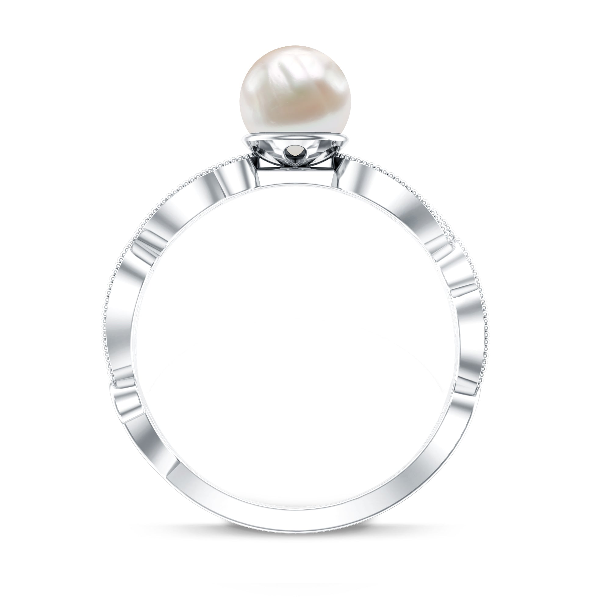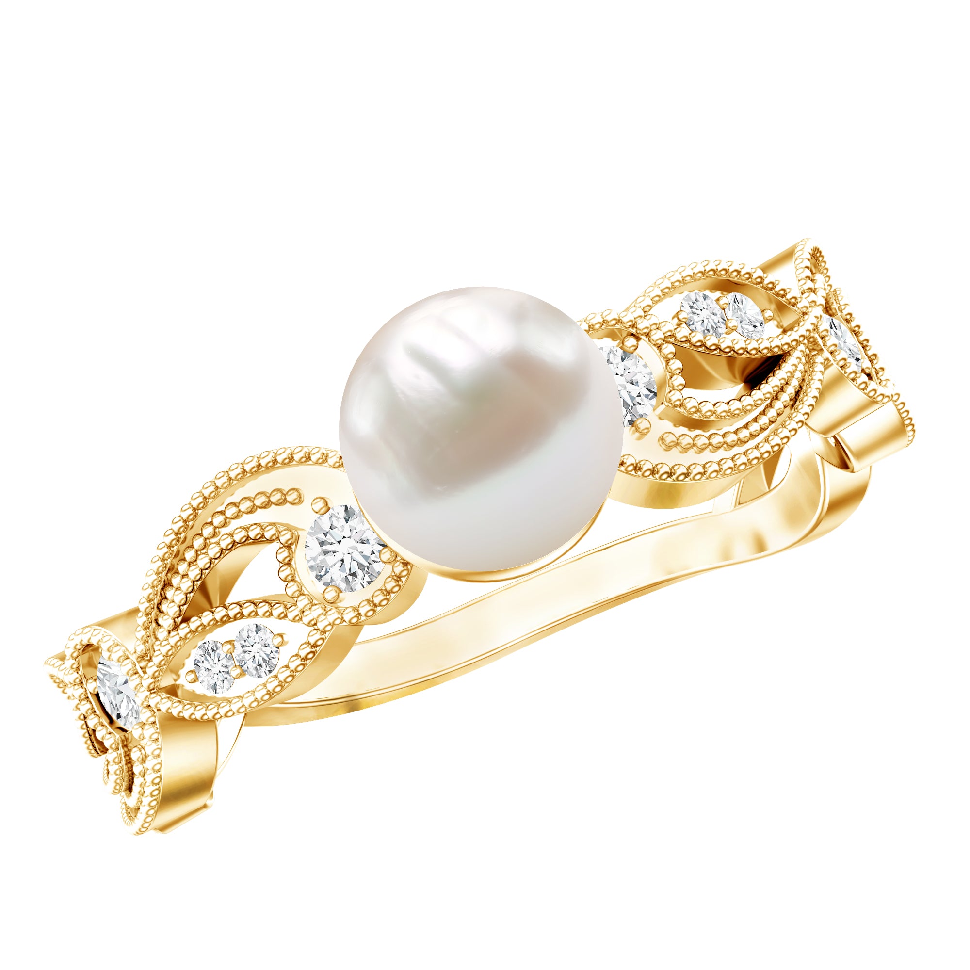 2.5 CT Freshwater Pearl Solitaire Beaded Ring with Diamond