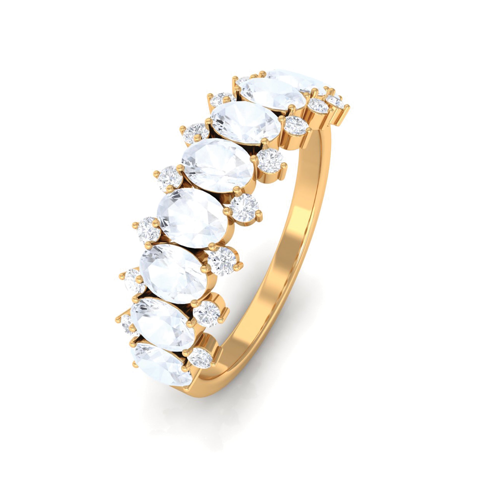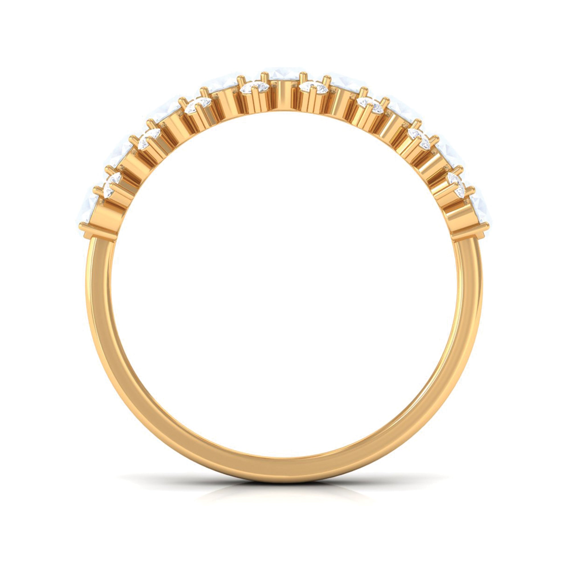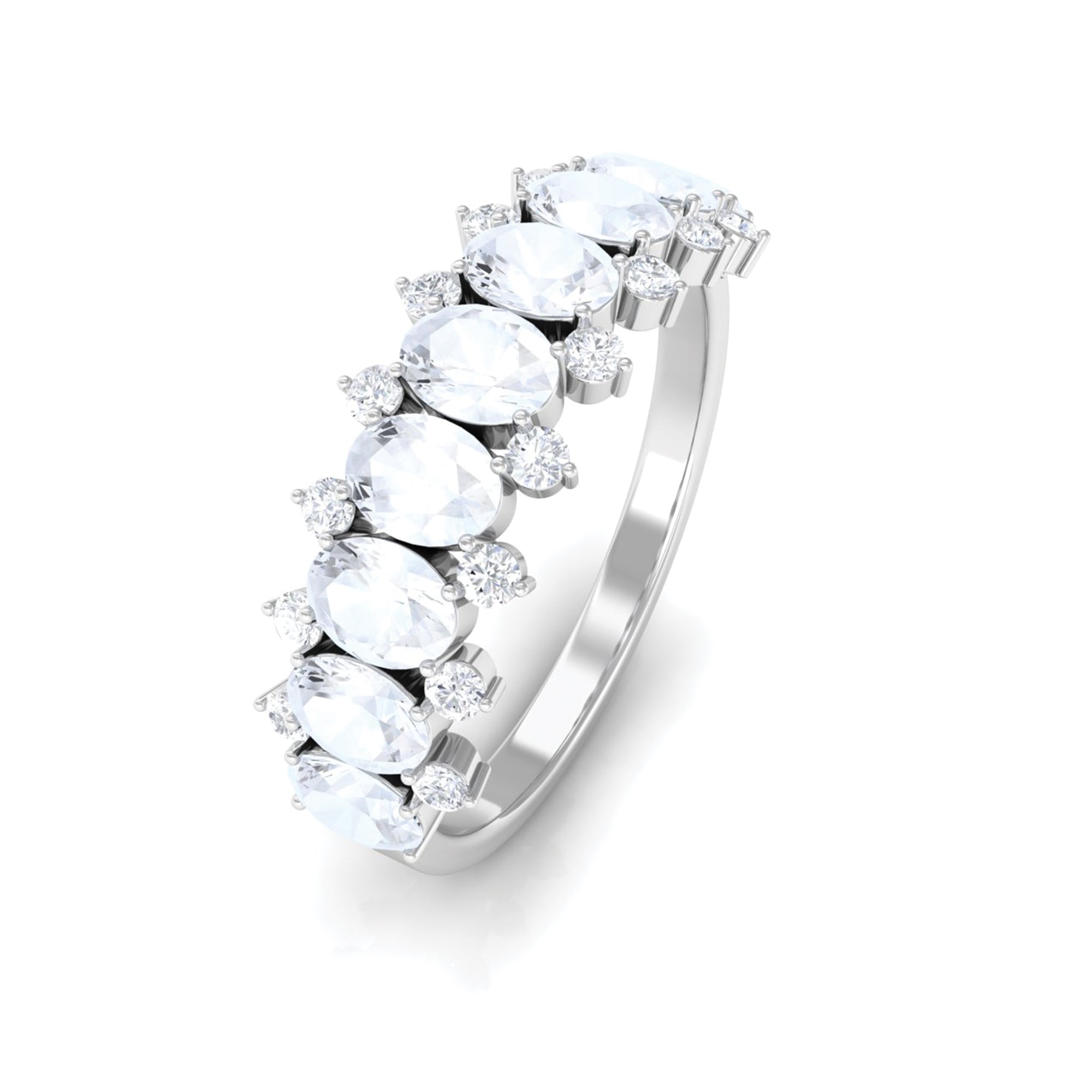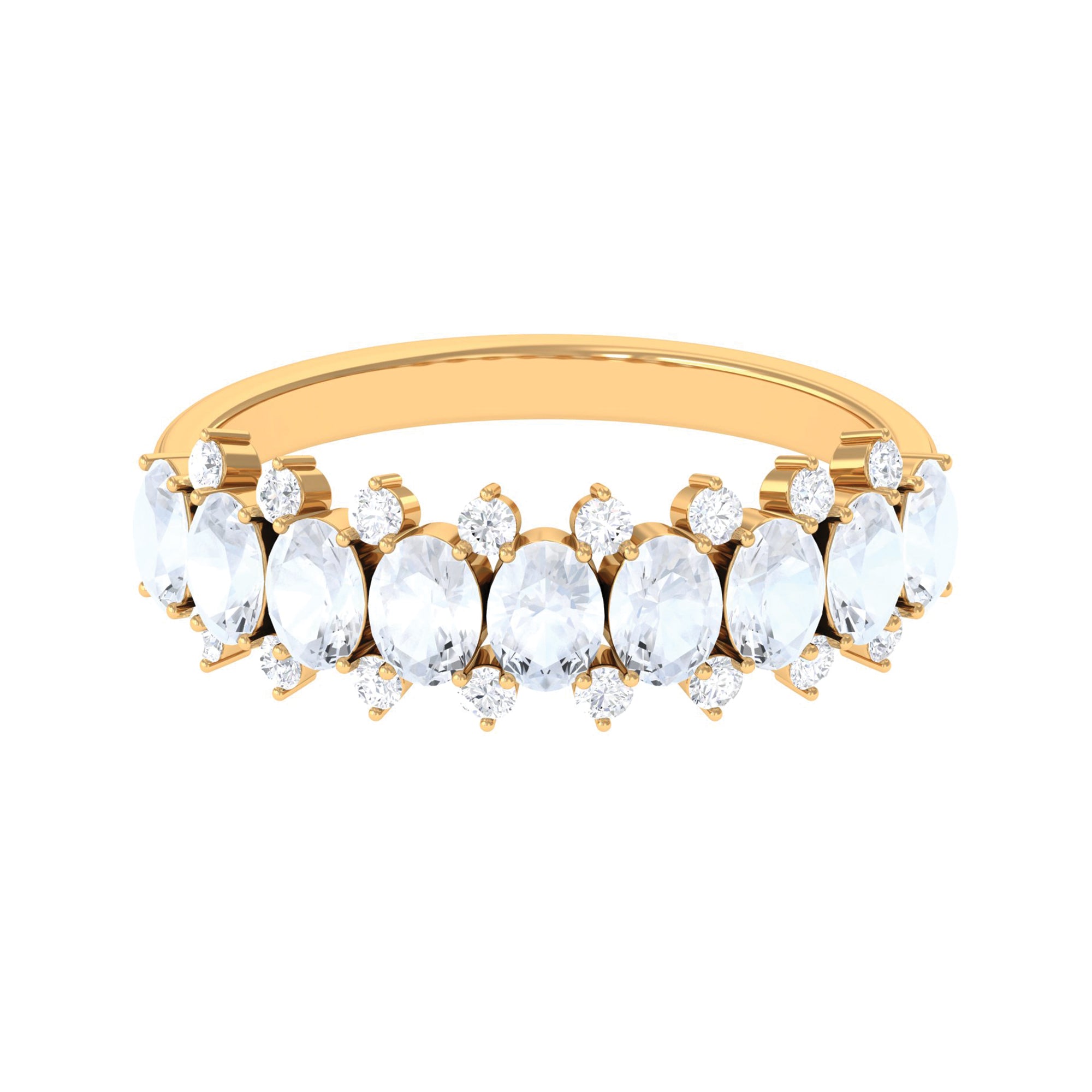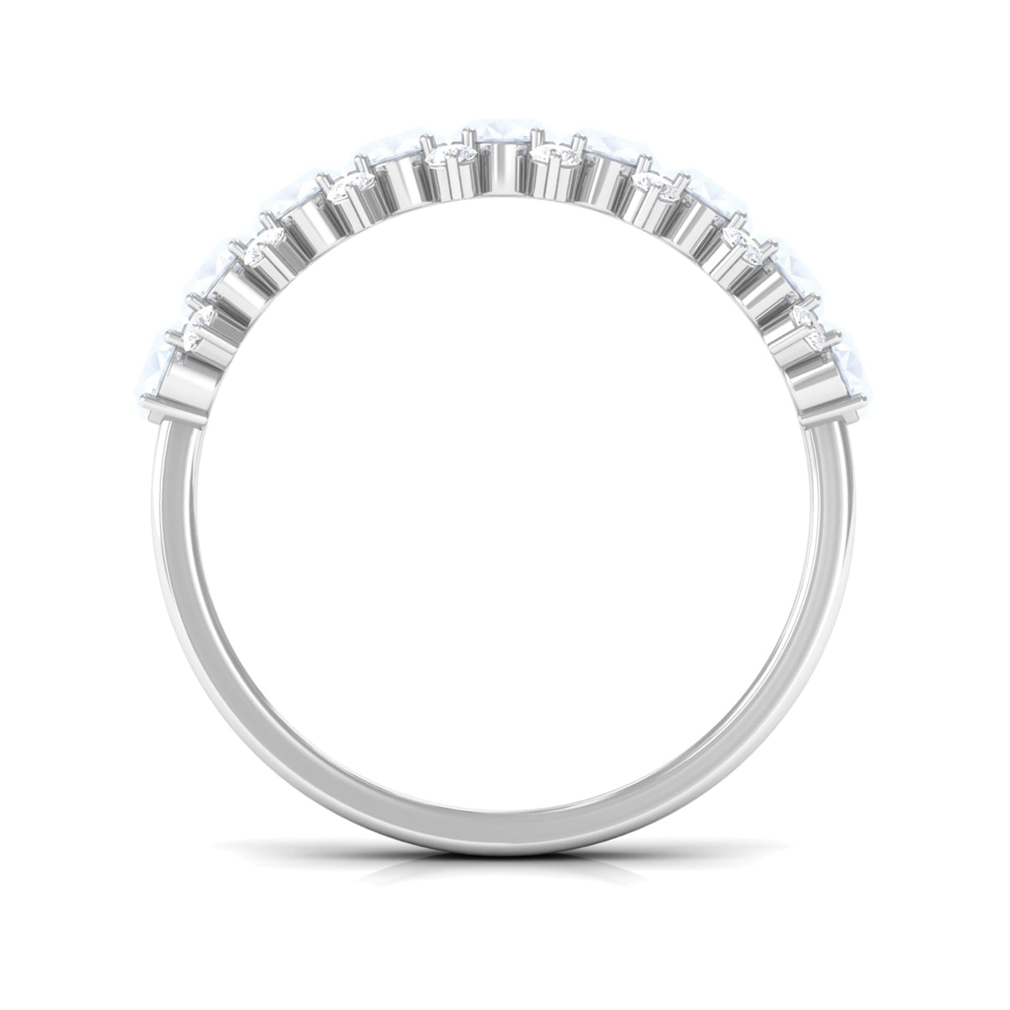Get this Oval Half Eternity Band for your lady love. It is embellished with Brilliant Oval Cut Moonstone and Round Shape Diamond in a prong setting. Grab this lovely Moonstone Half Eternity Band to let your lady feel more special.