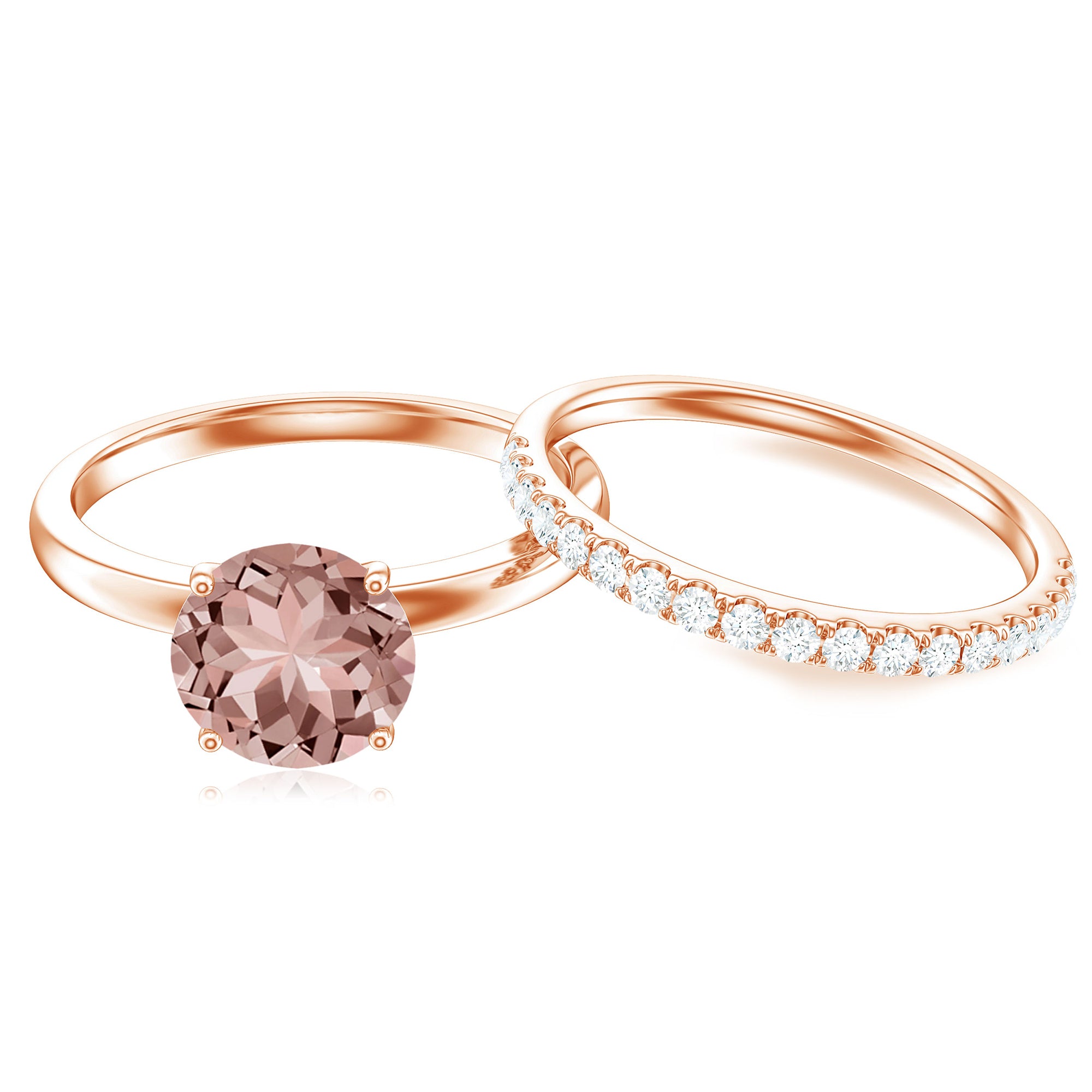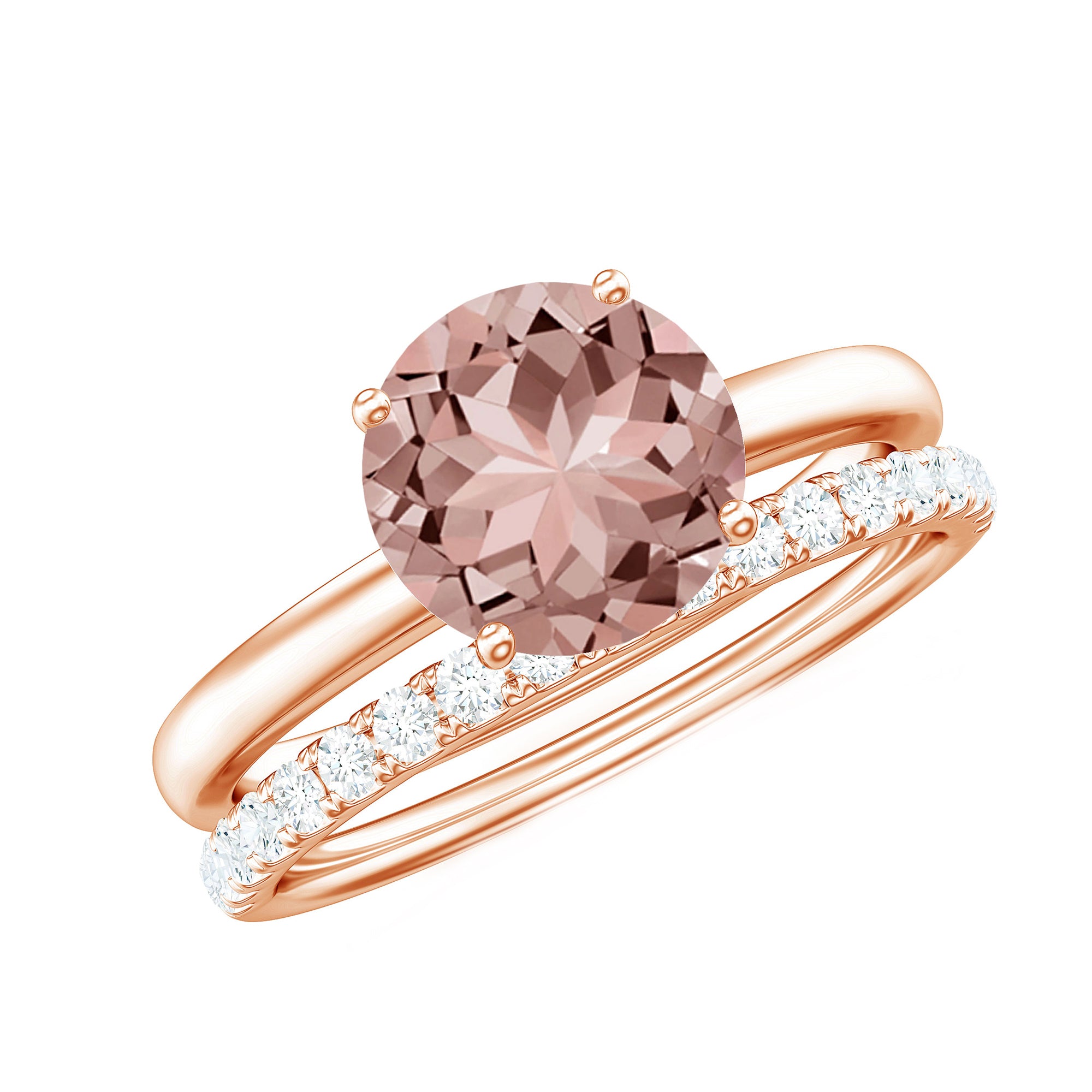 2.5 CT Natural Morganite Solitaire Bridal Ring Set with Moissanite