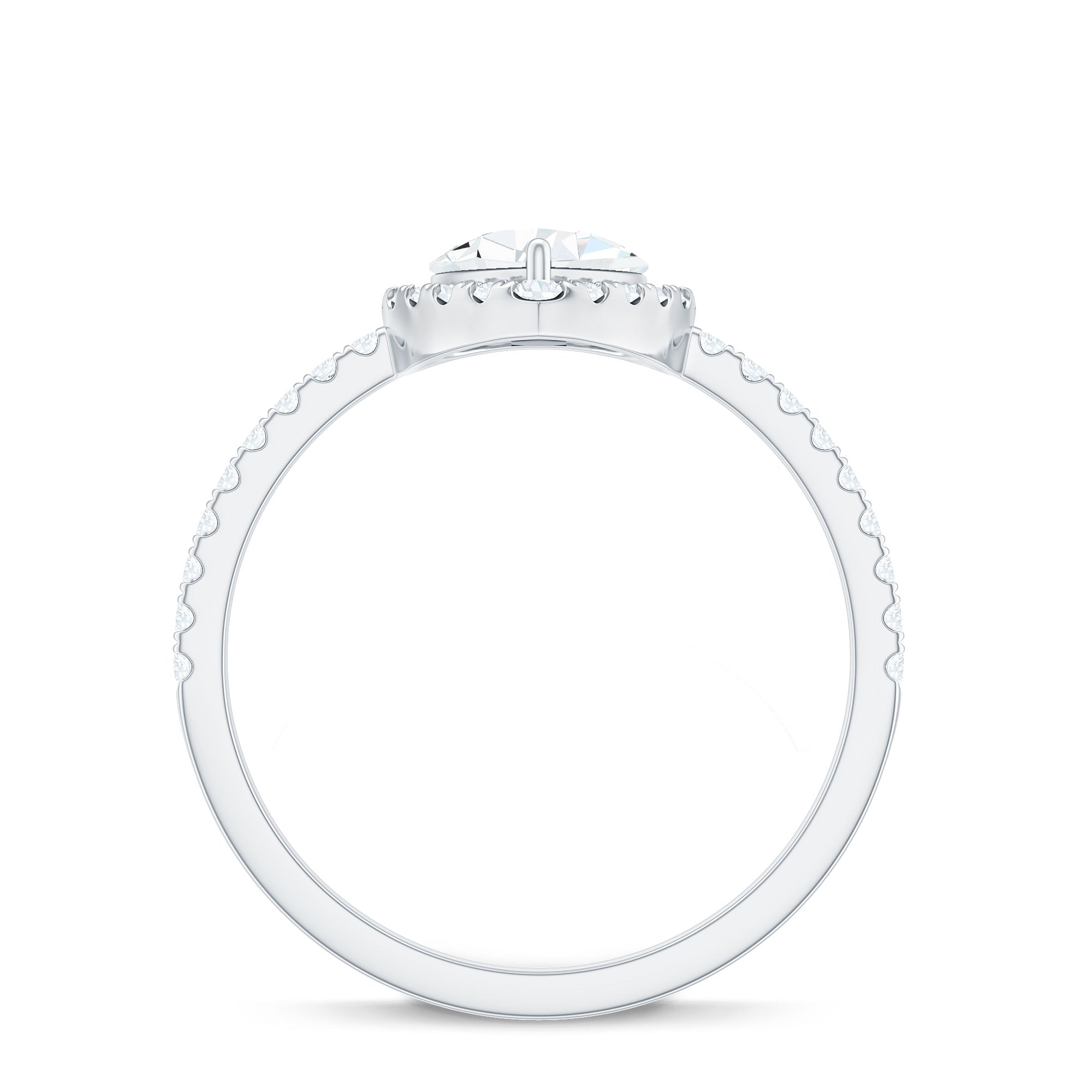The fire and brilliance of the 7X9 mm Zircon Teardrop Ring will forever shine through in every way, Our zircon engagement ring gives you an extraordinary feel on your big day. This Vintage Engagement Ring is embellished with Pear and Round Cut Certified Zircon in Prong Setting with Halo all around.
