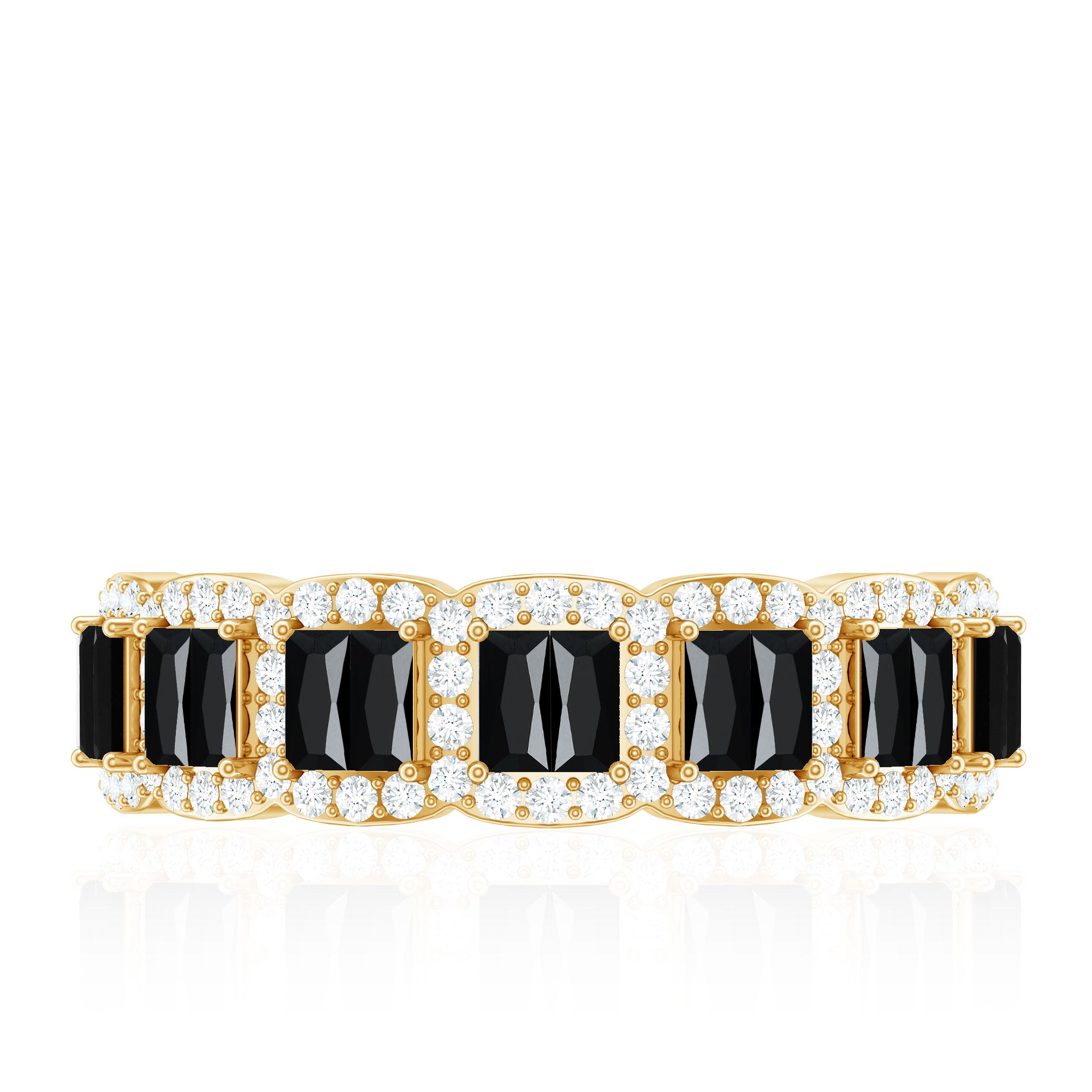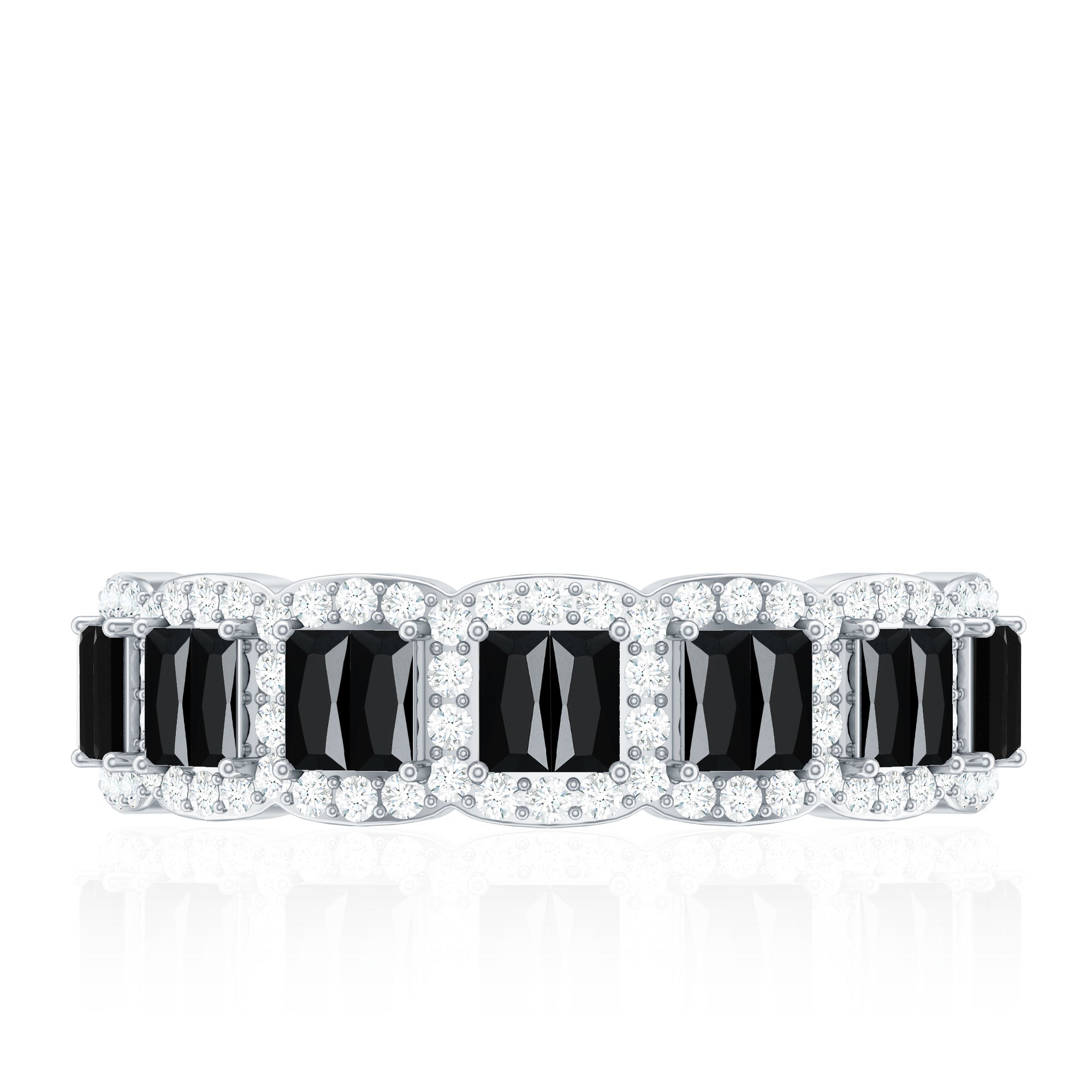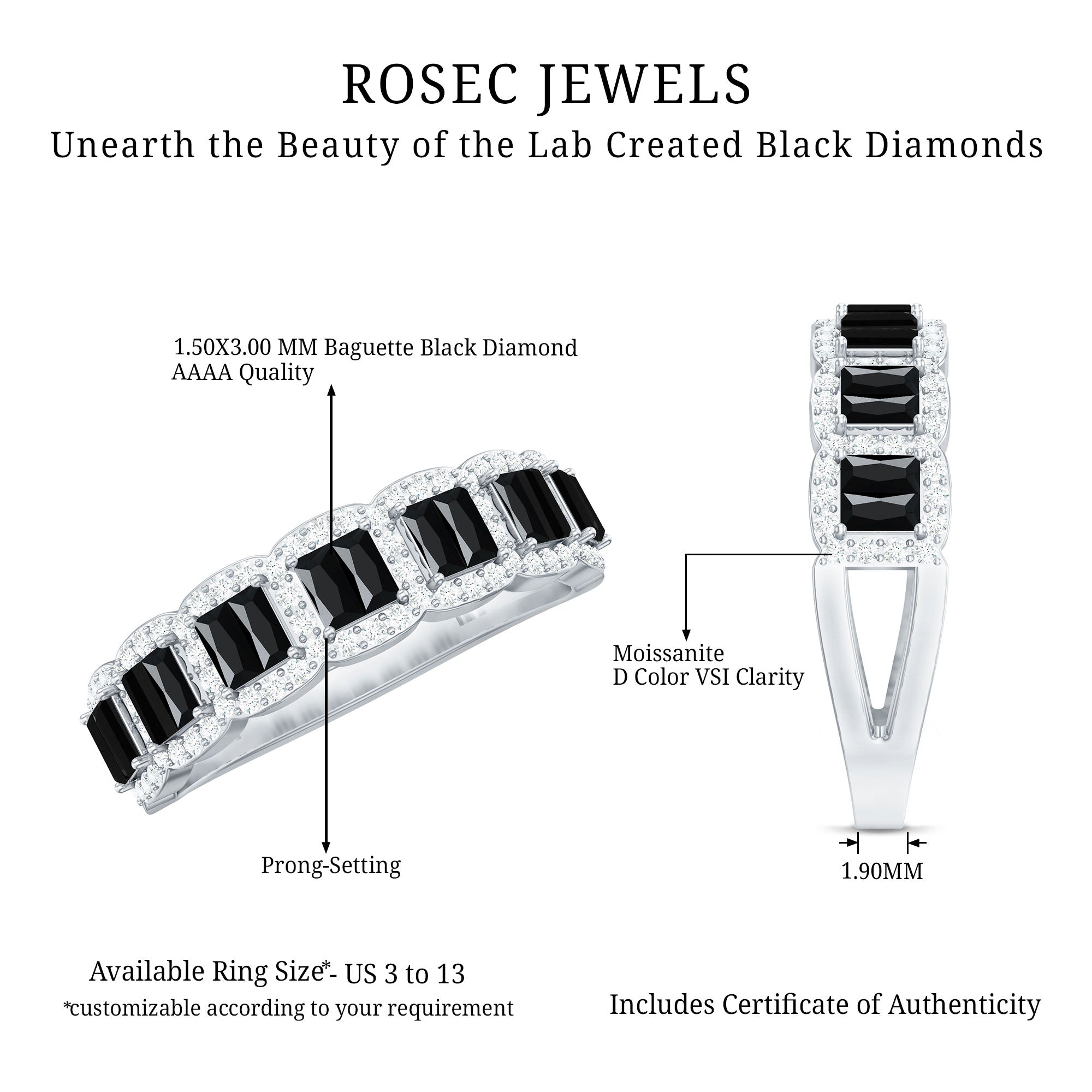 Epitomize your eternal connection with your loved one with our exquisite Baguette Shape Created Black Diamond and round Moissanite Accent Half Eternity Band Ring . This Gorgeous Ring is a go to deal to express your love this wedding season so dont delay and grab our amazing collection of Gemstone Ring now.