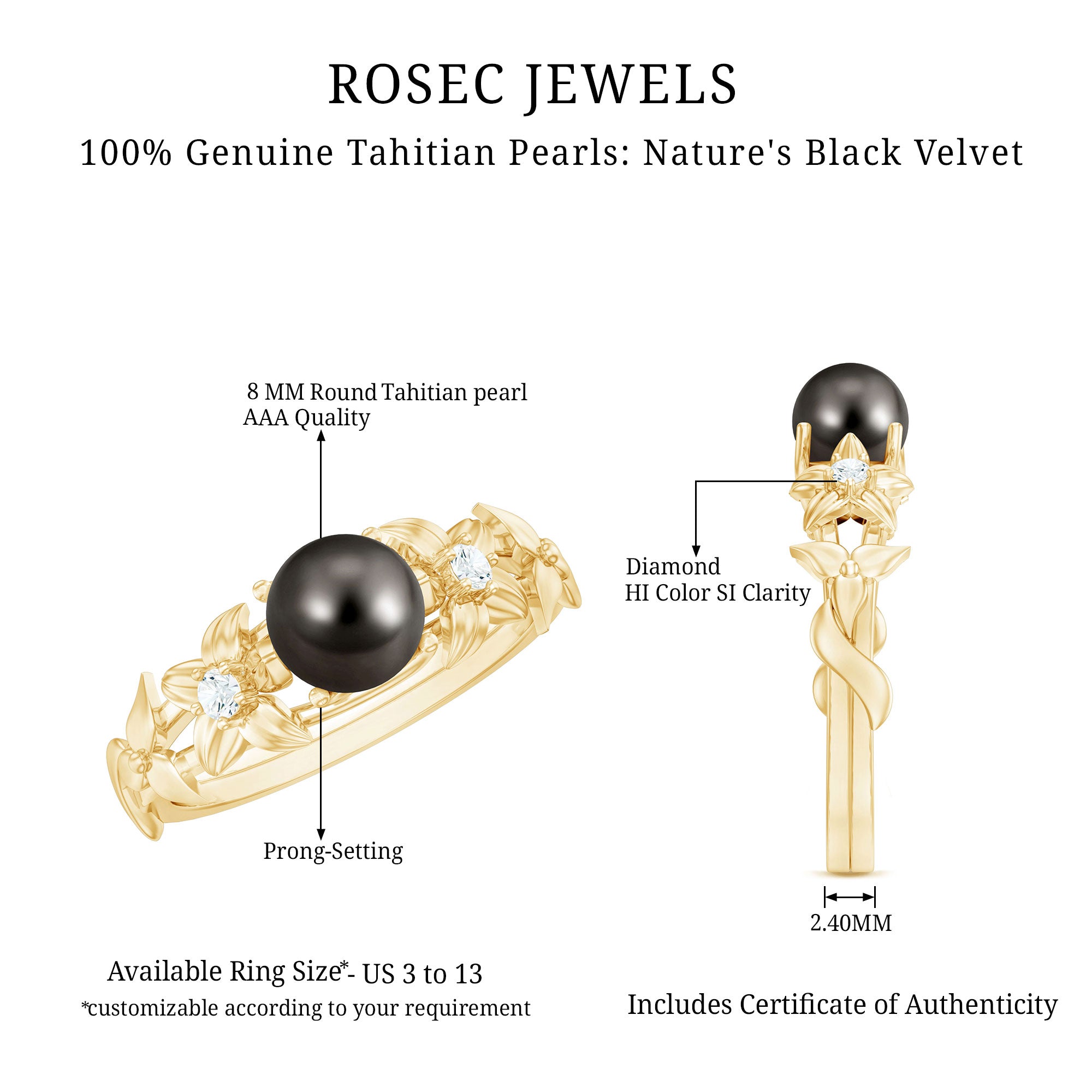 2.50 CT Black Tahitian Pearl Flower Engagement Ring with Diamond