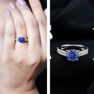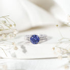 2.50 CT Created Blue Sapphire Solitaire Engagement Ring with Diamond and Milgrain Detailing