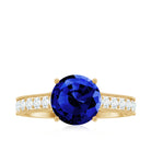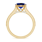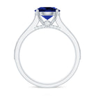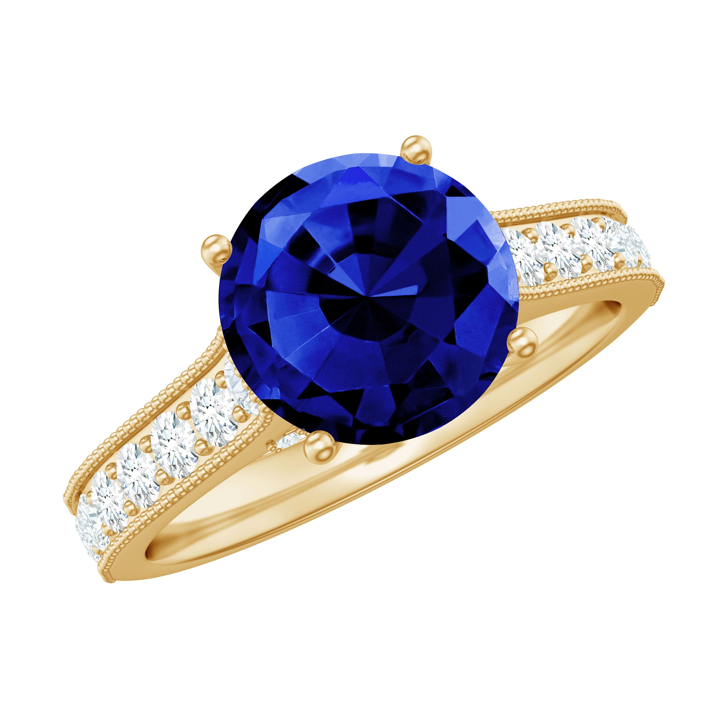 Looking for something minimalist yet something that matches your unique personality then this Solitaire Engagement Ring crafted in Solid Gold is the right choice for you. Round Shape Lab Created Blue Sapphire Solitaire is set in this Cathedral Setting Ring with Round Shape Diamond set as Accent and Milgrain Detailing gives it a mesmerizing touch.