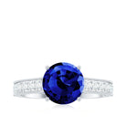 2.50 CT Created Blue Sapphire Solitaire Engagement Ring with Diamond and Milgrain Detailing