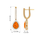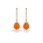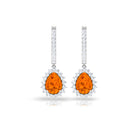 These charming Bridal Teardrop Earrings are adorned with Pear Cut Fire Opal and round shape Moissanite to make for a gorgeous choice to complement your outfit on your special day.