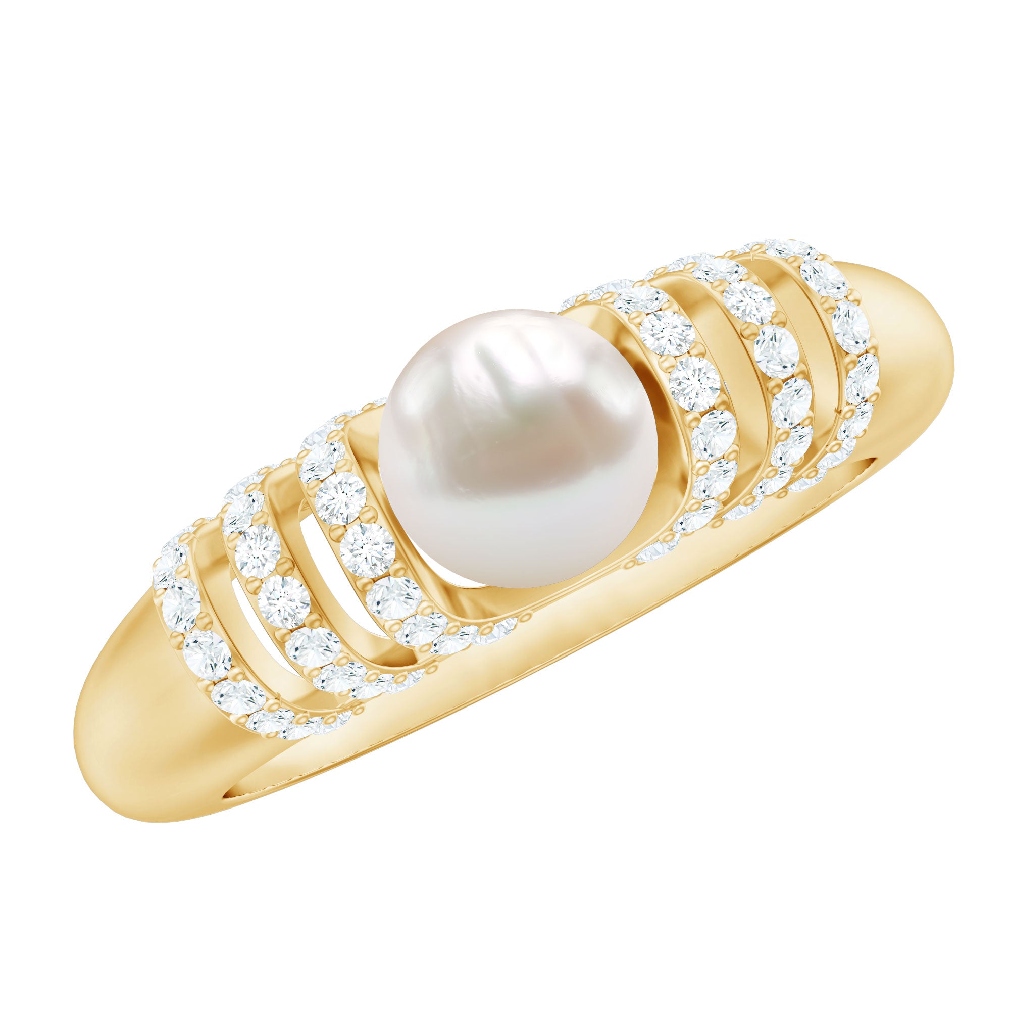 Looking for the perfect present for the love of your life, One thatll shine as bright as your love for her. This round shape Freshwater Pearl Engagement Ring is the perfect pick. Captivating Solitaire Engagement Ring is embellished with round shape Diamond held in Surface Prong Setting and crafted in gold metal to amplify the charm of this Ring.
