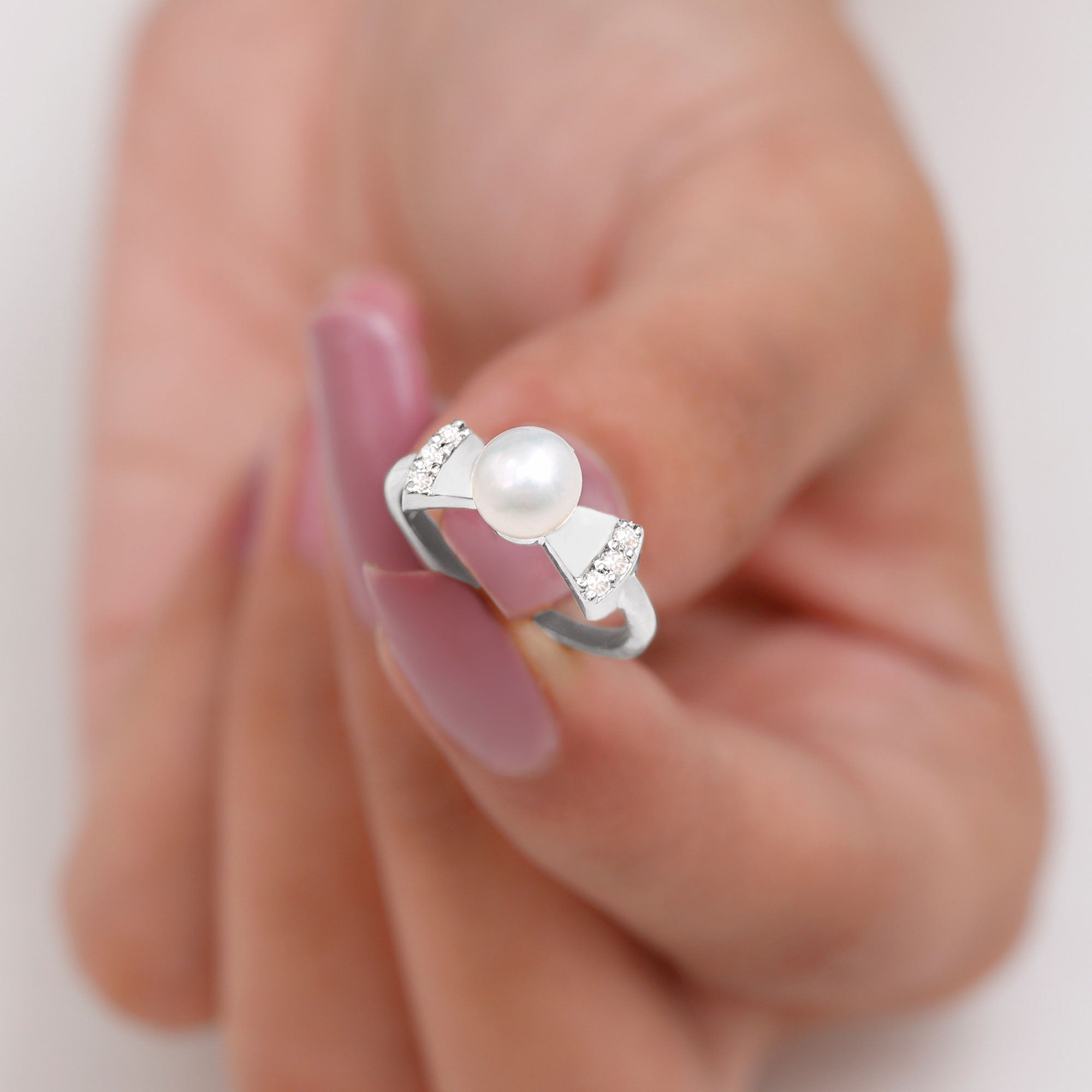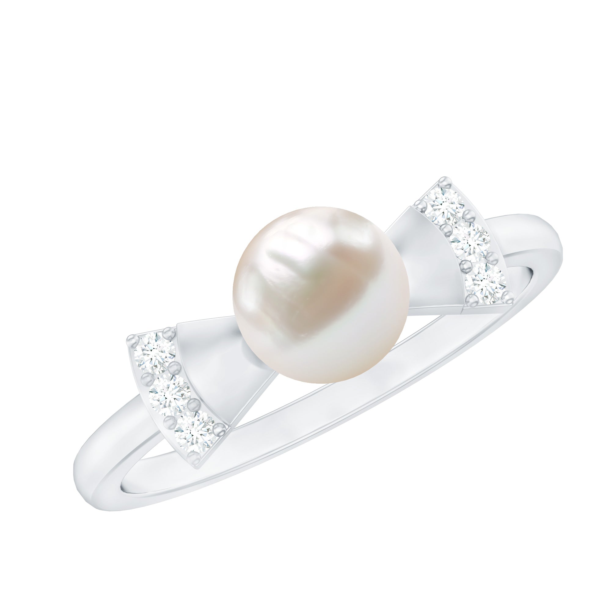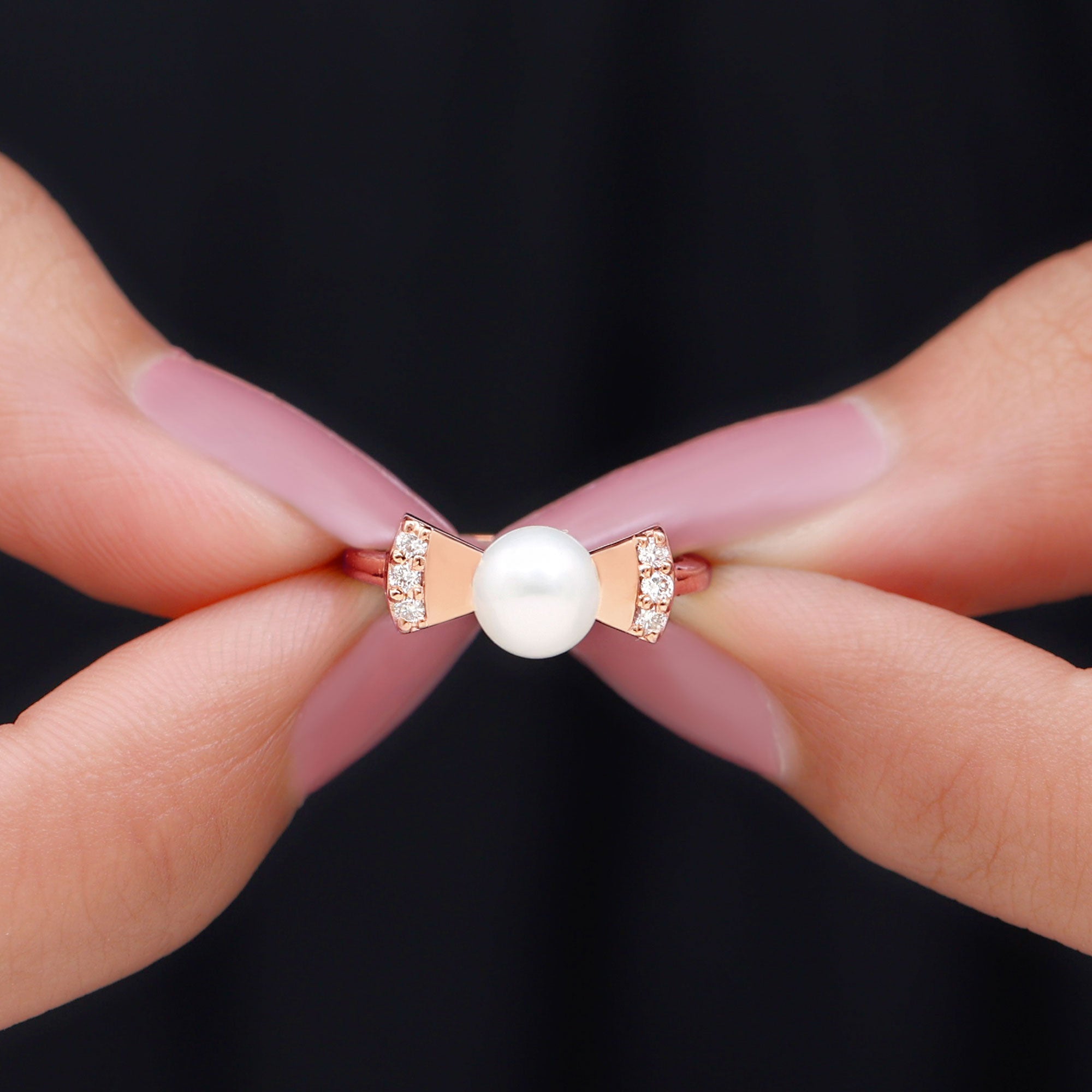 2.50 CT Freshwater Pearl Solitaire Bow Ring with Diamond