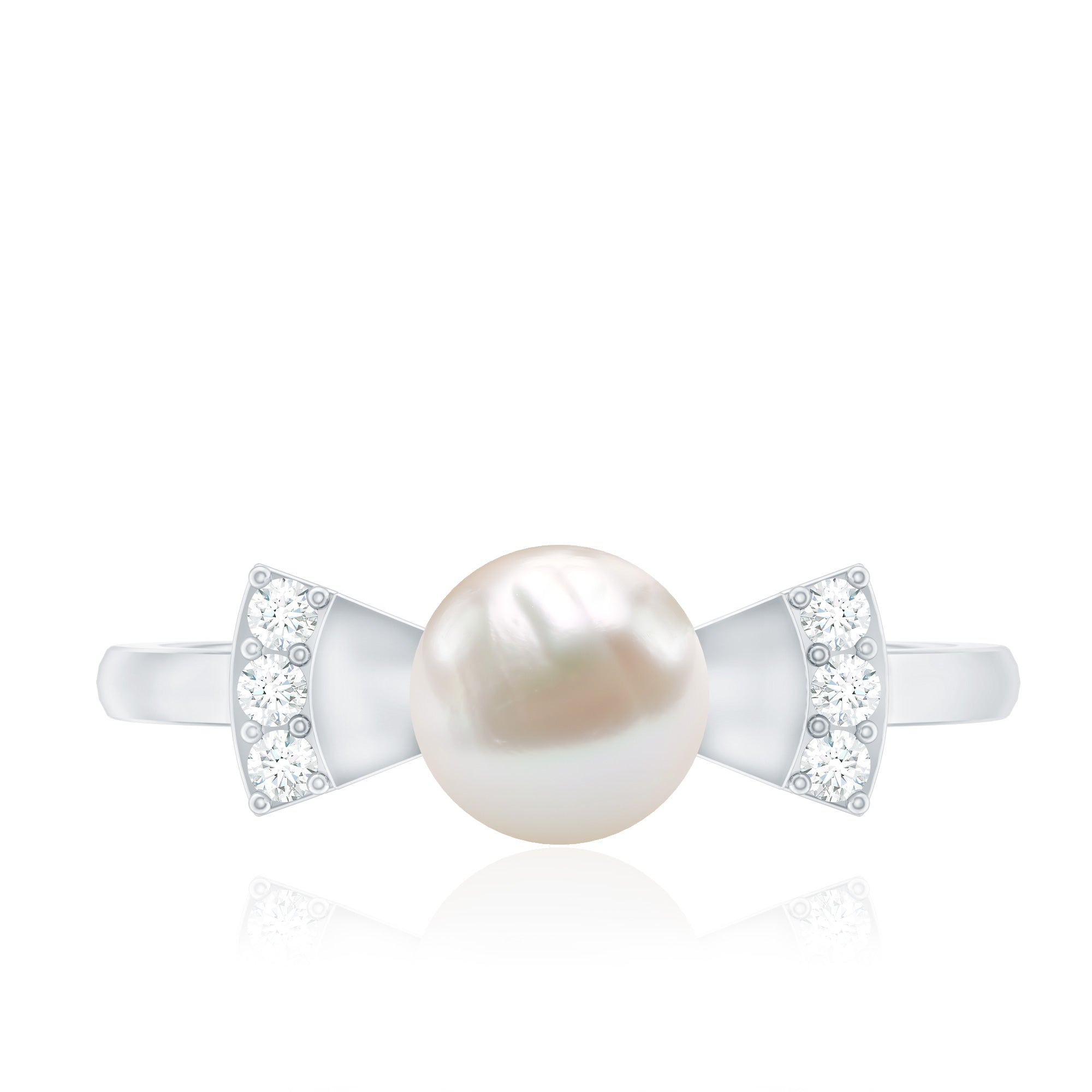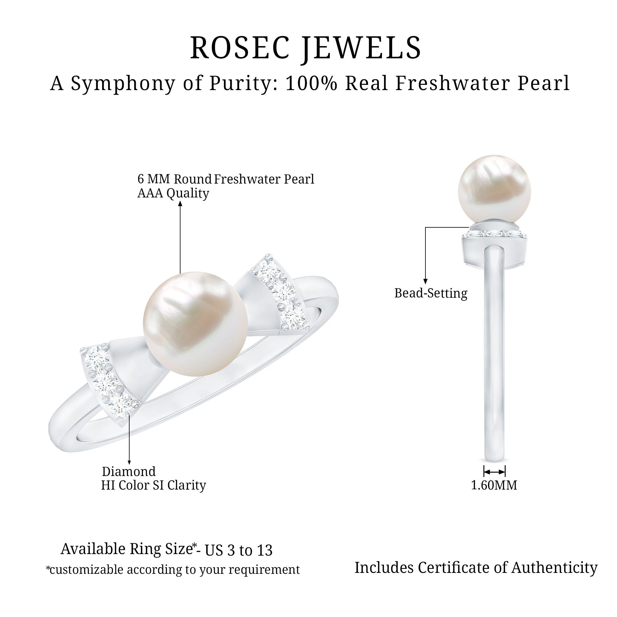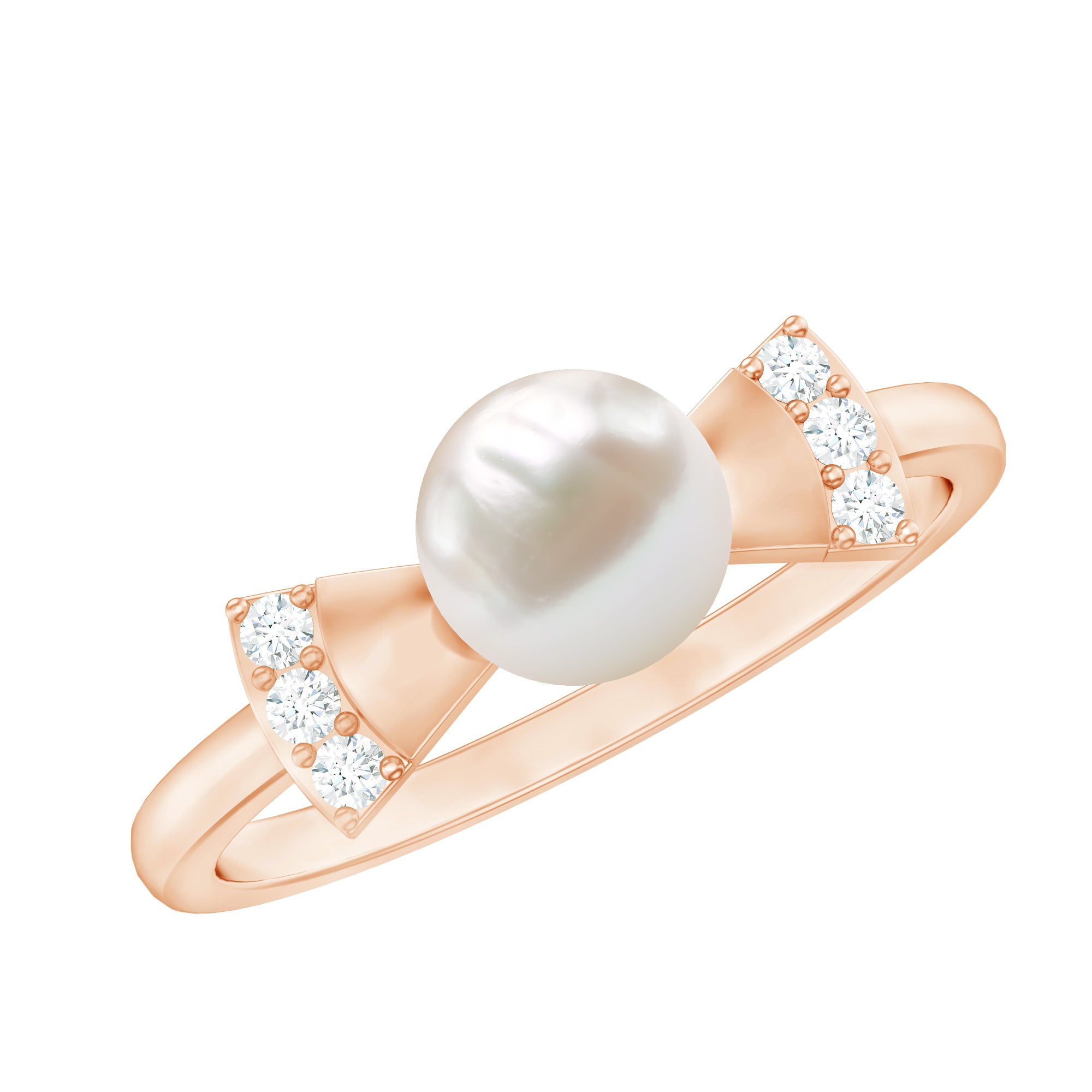 2.50 CT Freshwater Pearl Solitaire Bow Ring with Diamond