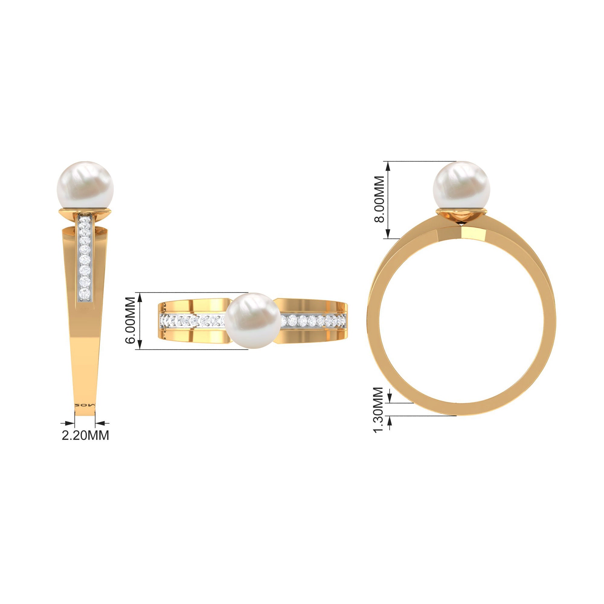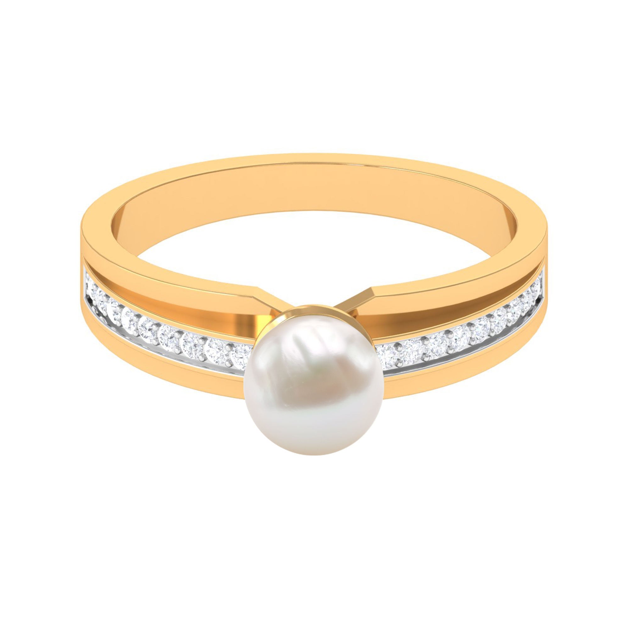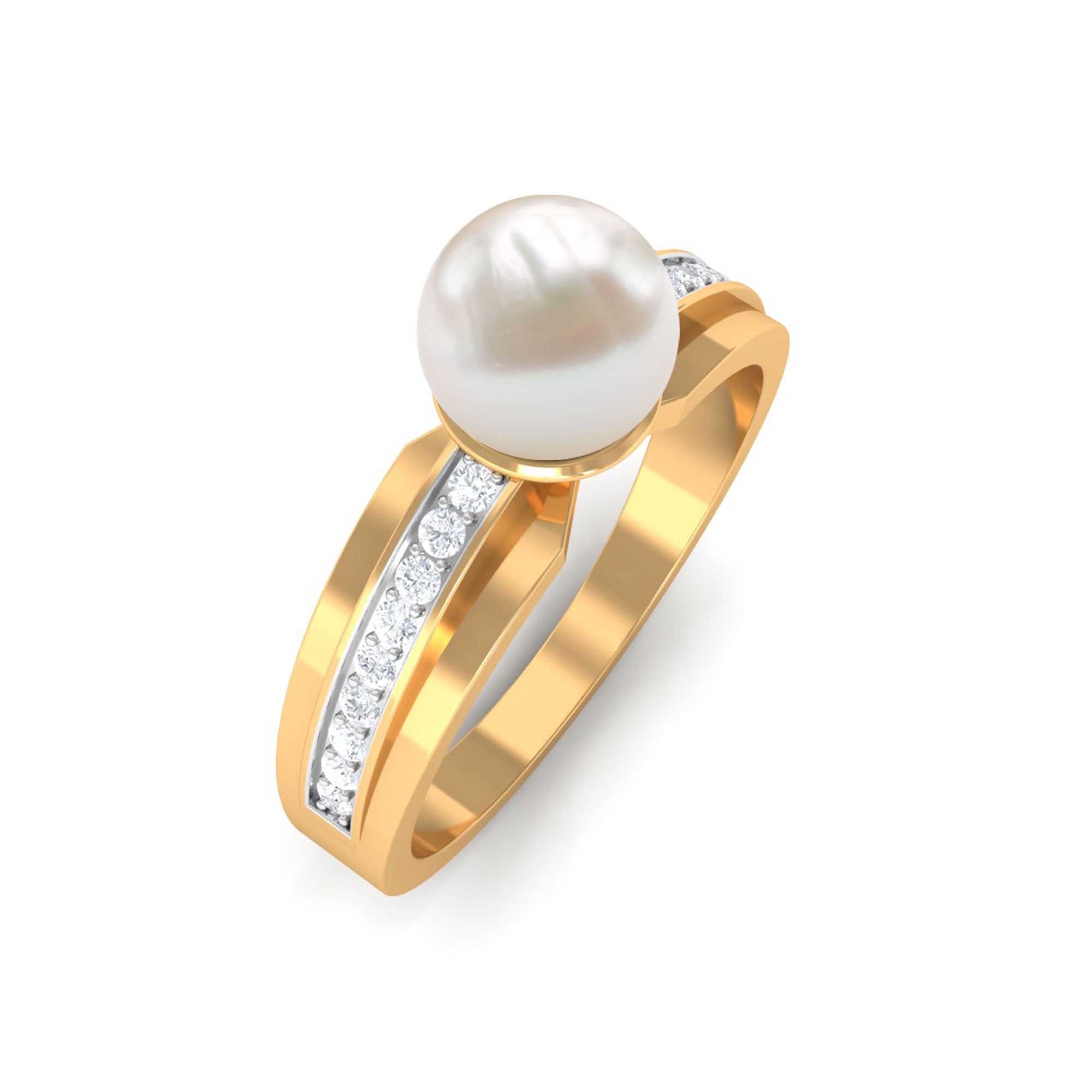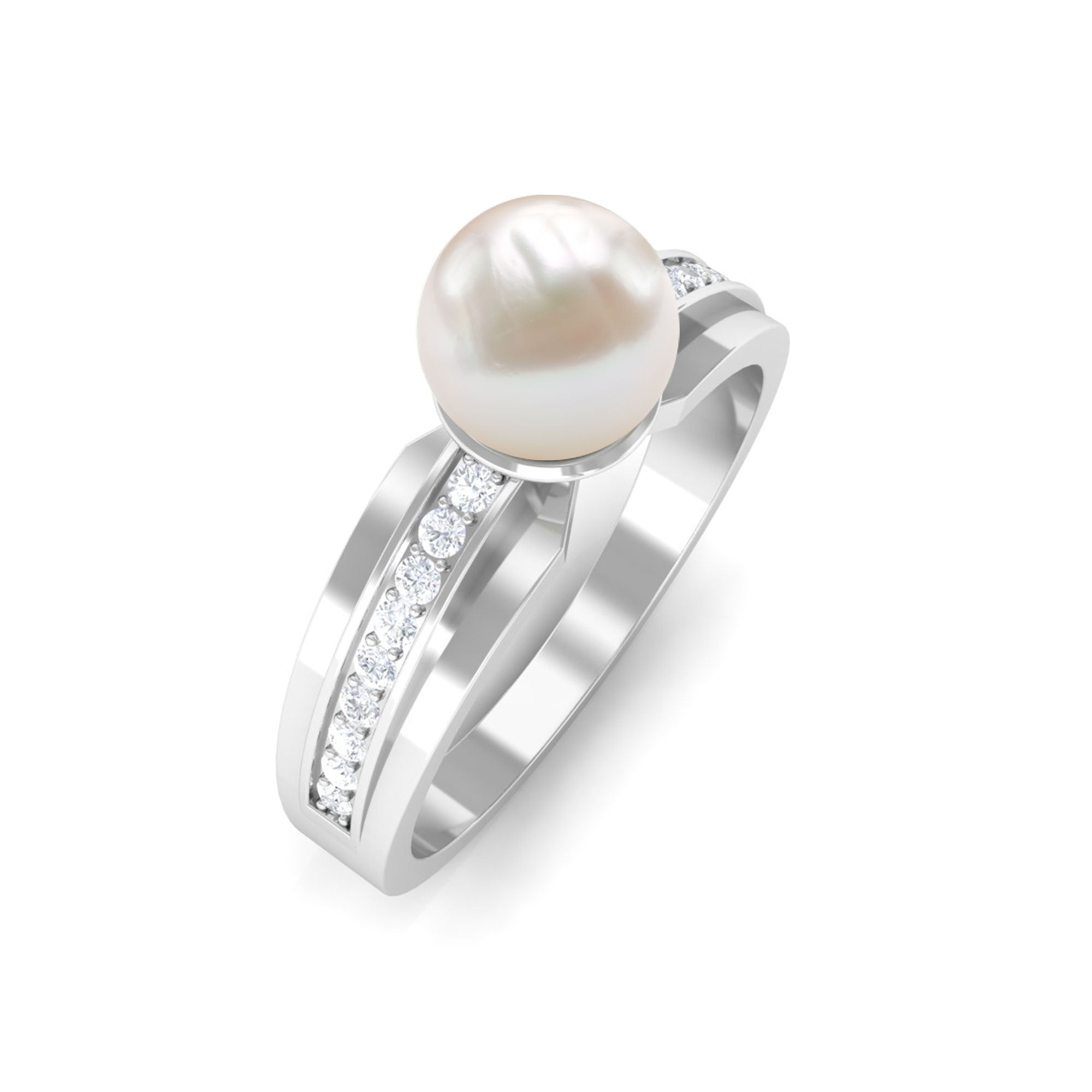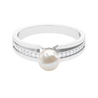 2.50 CT Freshwater Pearl Solitaire Ring with Diamond Side Stones