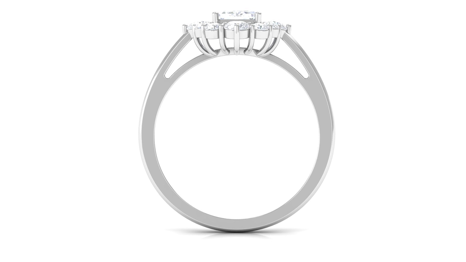 A perfect ring is a more precise ways to express emotions to your better half. This beautiful ring will make her feel on cloud nine, the Zircon Engagement Ring effortlessly draws your attention. This ring is embellished with Octagon Cut Zircon with halo, creating a glistening appeal. This Classic Cubic Zirconia Ring is excellent choice for Engagement jewelry.