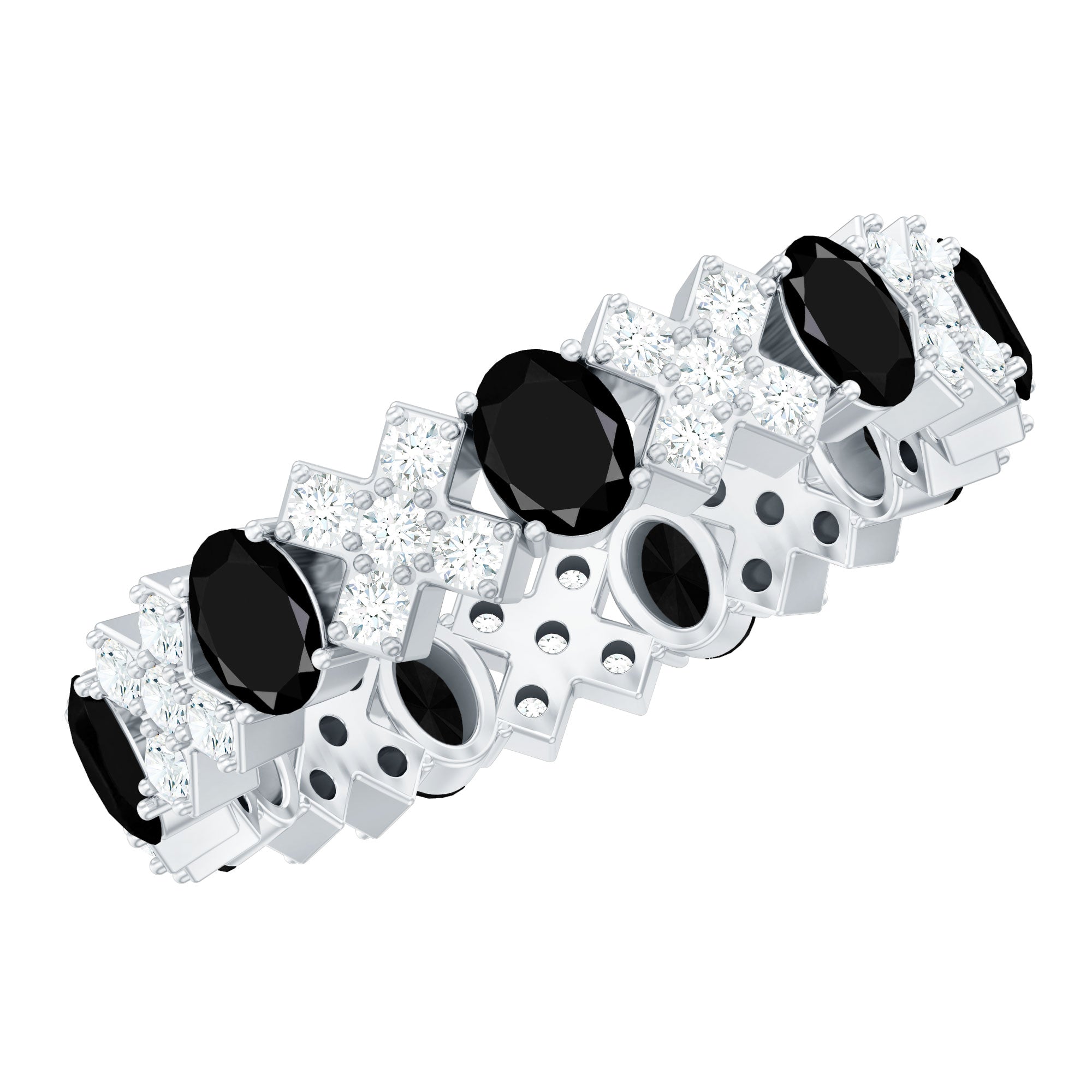 2.50 CT Oval Black Spinel and Moissanite Eternity Band