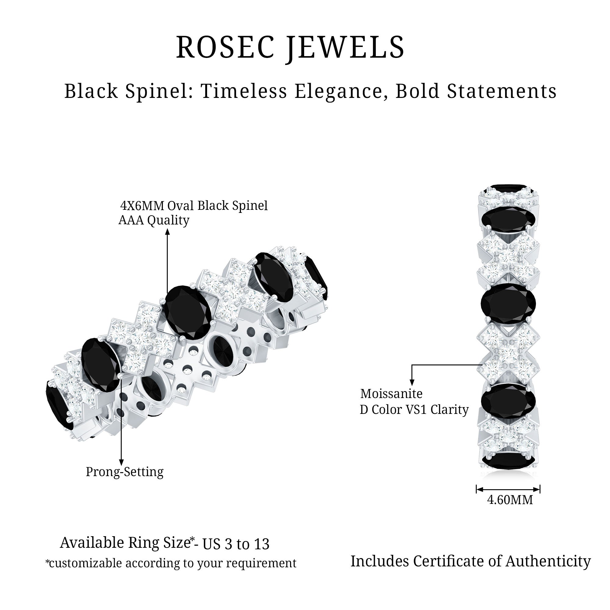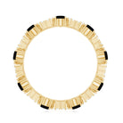Glistening piece of fine jewelry, this Designer Eternity Ring is featuring Oval Cut Black Spinel held in prong setting along with Round Moissanite in alternative pattern. This Black Spinel Eternity Ring is crafted in Gold for enchanting appeal. Mesmerize your lady with this full eternity ring on her birthday.