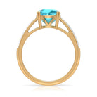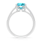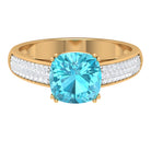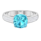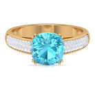 Add more spark to your attire with this Swiss Blue Topaz Ring. This Solitaire Ring features with Cushion Cut Swiss Blue Topaz in Double Prong Setting and Pave Set Diamond. Being crafted in Solid Gold, this Glamorous Ring is perfect for your engagement day.