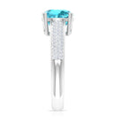 2.50 CT Solitaire Swiss Blue Topaz and Pave Set Diamond Ring