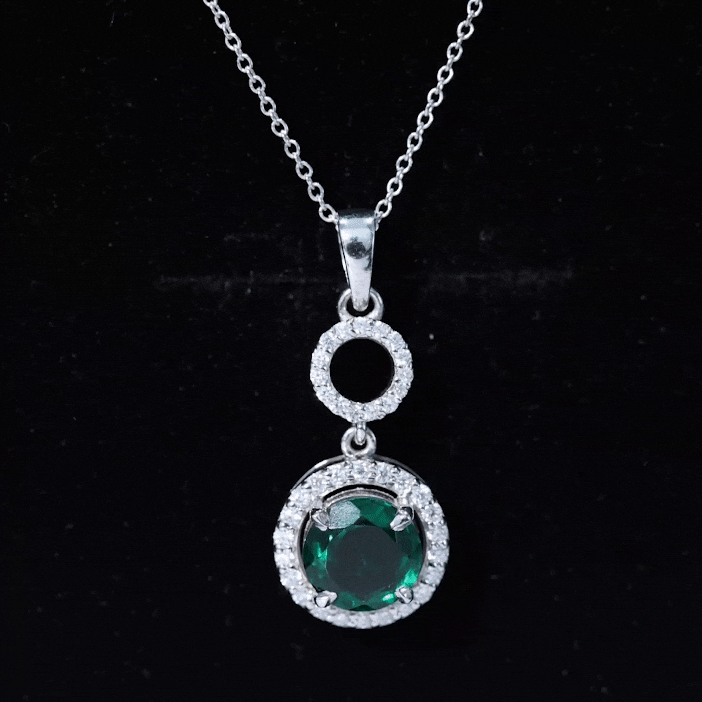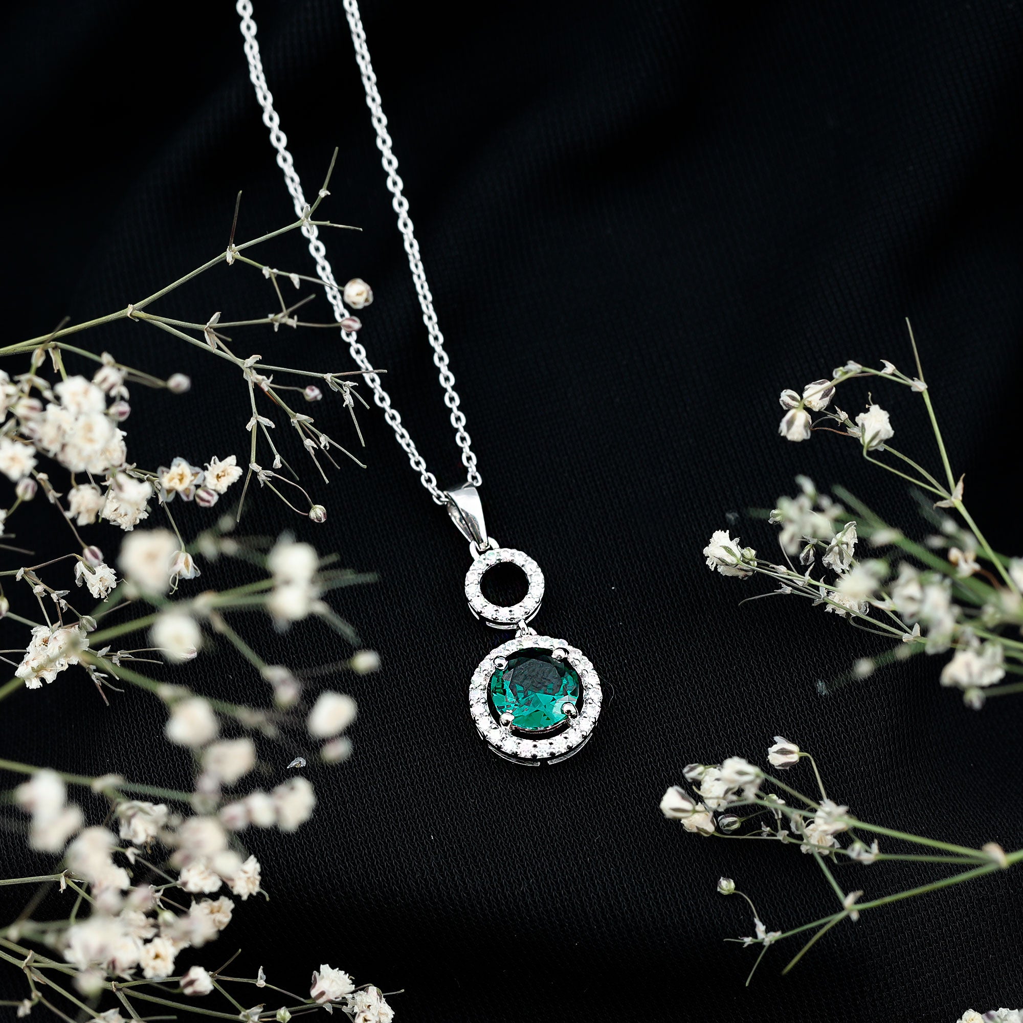 2.75 CT Certified Lab Created Emerald Silver Dangle Necklace with Zircon
