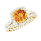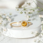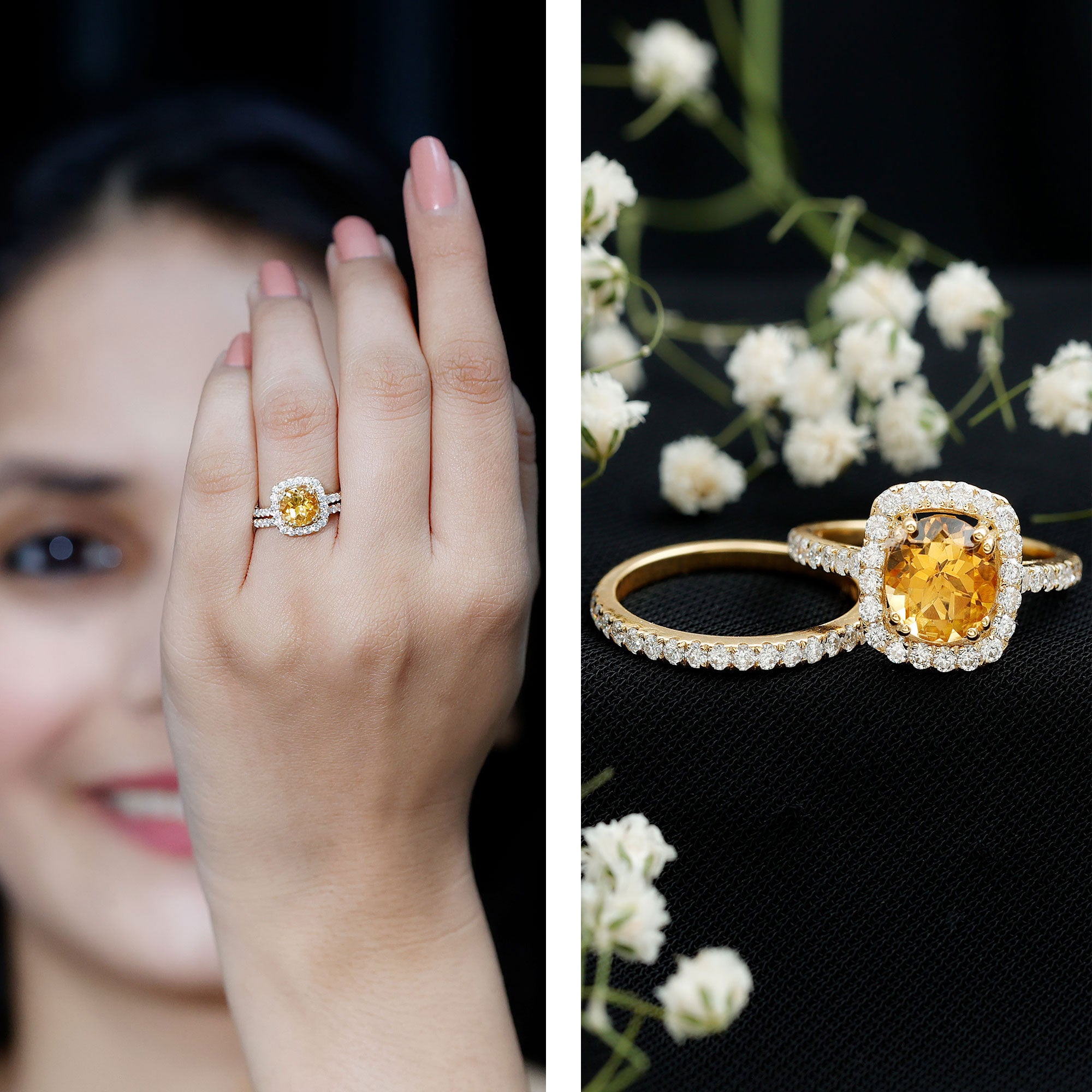 2.75 CT Citrine Classic Halo Wedding Ring Set with Moissanite Band