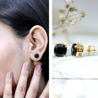 2.75 CT Cushion Cut Black Spinel Solitaire Stud Earrings