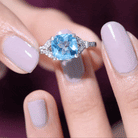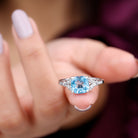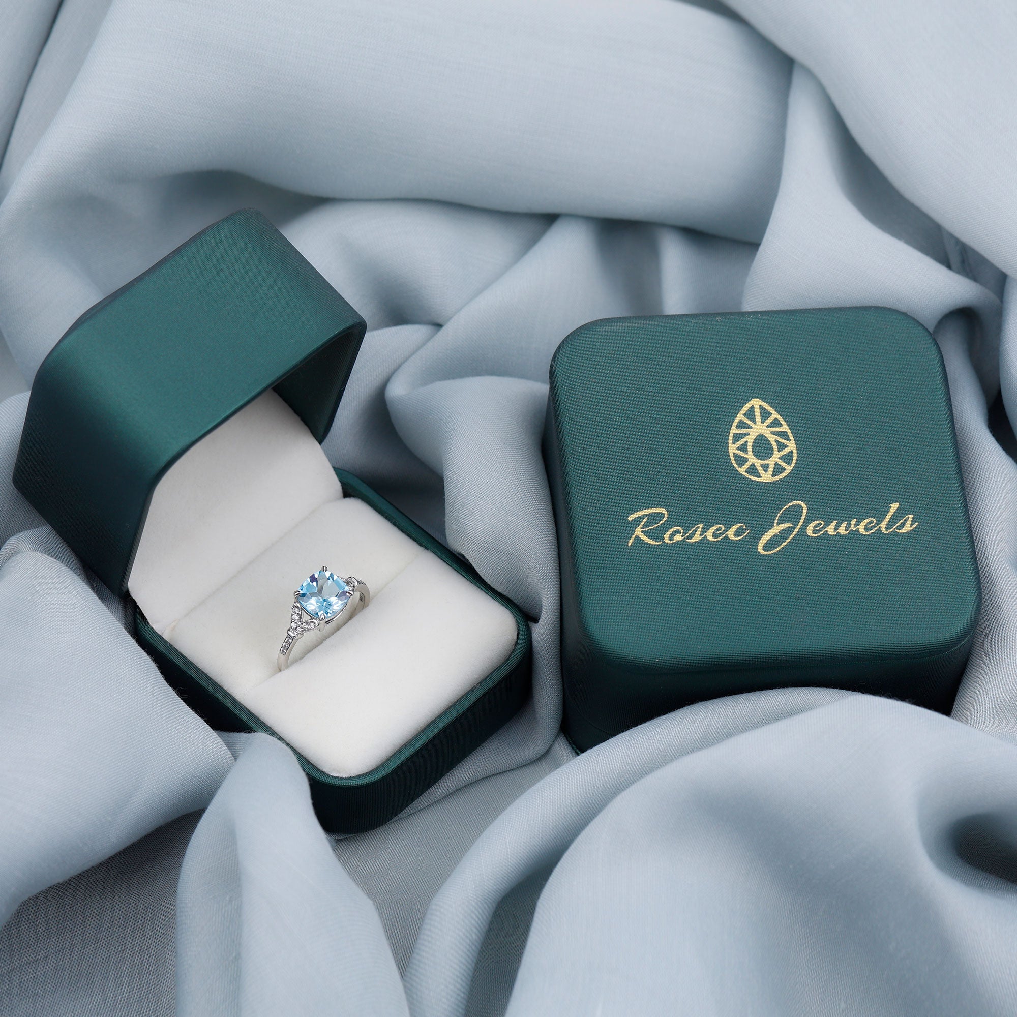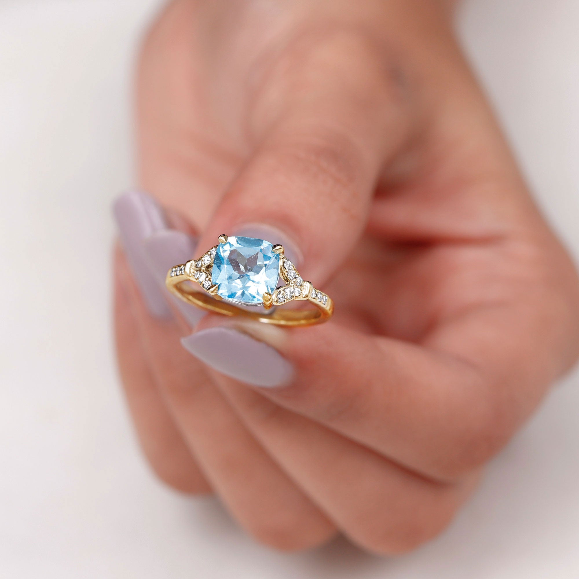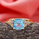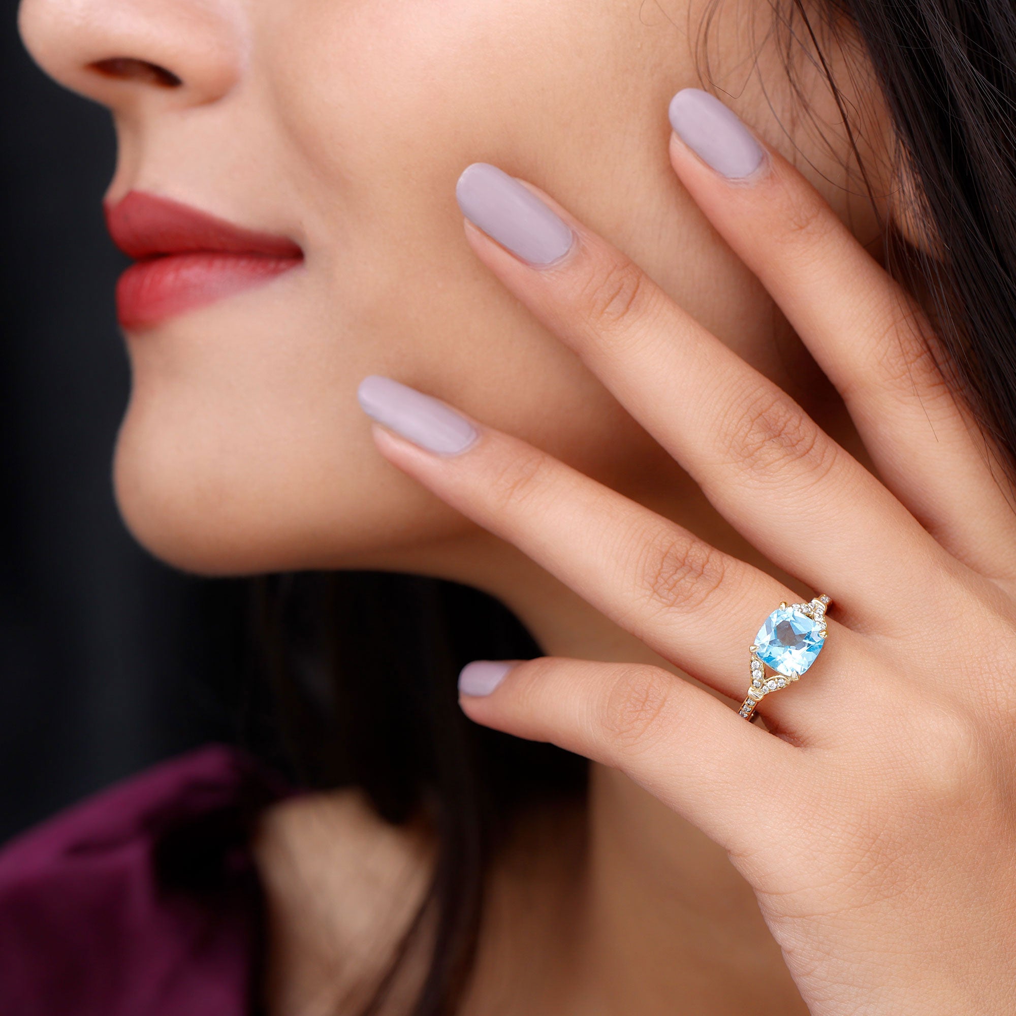2.75 CT Cushion Cut Swiss Blue Topaz Solitaire with Diamond Side Stone Ring