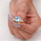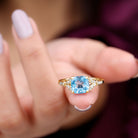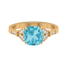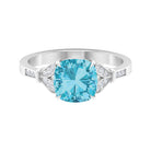 Beautifully designed with Swiss blue topaz solitaire and Diamond accents, this engagement ring makes for a gorgeous choice for your special day. The solid gold split shank adorned with dazzling stones create a graceful mystique.