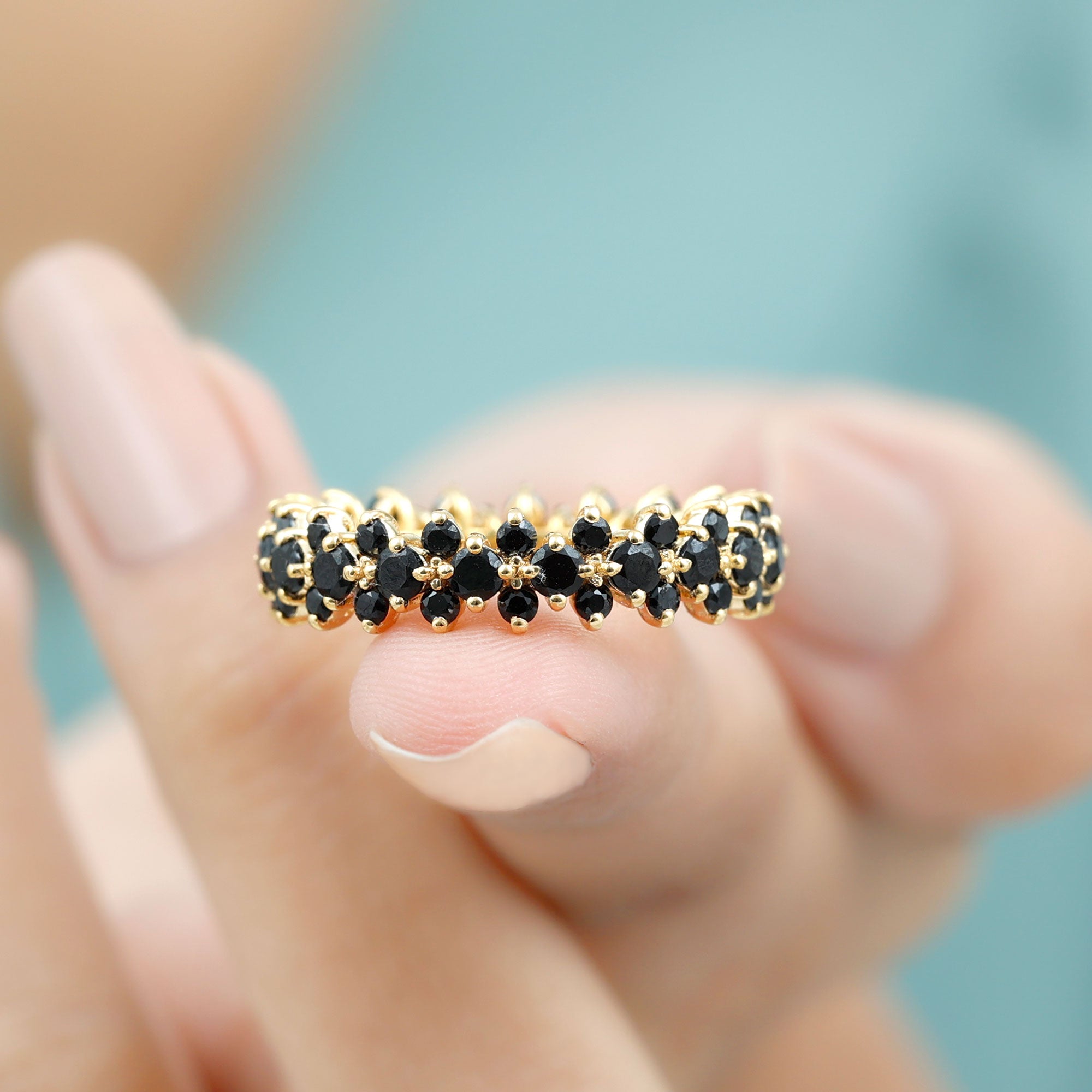 Express your love with this beautiful Full Eternity Ring. Adorned with round-cut black spinel in a prong setting, this ring is crafted from solid gold for a luxurious appeal. It is the perfect present for the special woman in your life, beautifully embellished and unique.